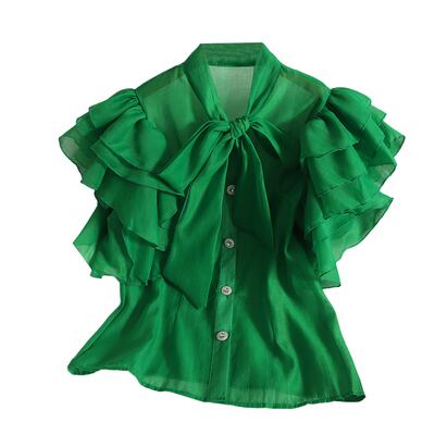 トップス レディース 袖あり 半袖 フレアスリーブ Vネック フレア 裾フレア シフォン フリル リボン ふわふわ 前開き かわいい 大人可愛い きれいめ 上品 おしゃれ お洒落 大人可愛い 大人女子 こなれ感 ワンサイズ ホワイト ブラック グリーン イエロー ピンク オレンジ パステルカラー 無地 春 夏 2021 20代 30代 オフィス ビジネス OL 通勤 学生 通学 デート お出かけ 女子会 着回し 韓国 韓国系 オルチャン スタイル モテ 新作 プチプラ トレンド 流行 インスタ映え