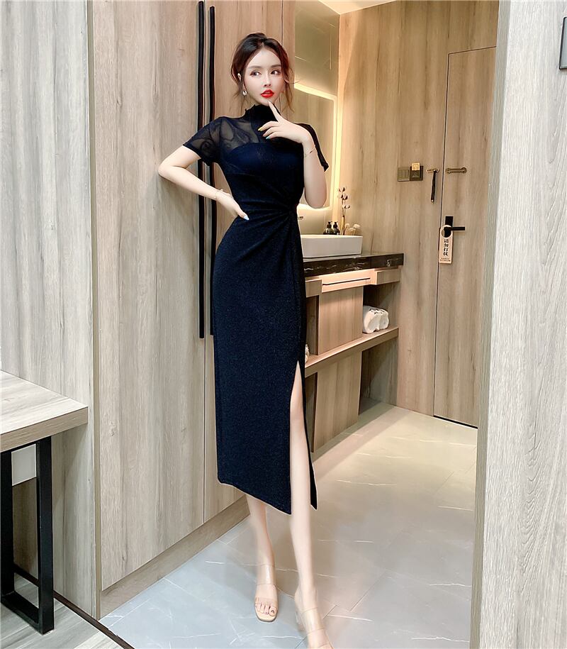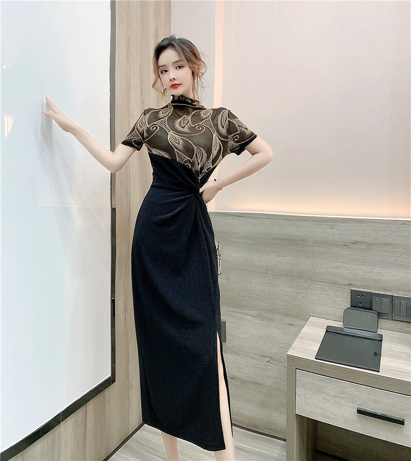ワンピース レディース ワンピドレス タイトワンピ マキシ丈 ミディアム丈 袖あり 半袖 襟付き スタンドカラー フリルカラー スリム タイト 細身 切り替えデザイン Iライン レース ウエストマーク サイドスリット きれいめ 大人 上品 おしゃれ かっこいい 大人女子 セクシー エレガント 黒 ブラック 赤 レッド ゴールド 無地 リーフ柄 夏 披露宴 二次会 10代 20代 OL 通勤 学生 通学 デート お出かけ パーティー イベント リゾート 韓国系 ファッション スタイル モテ 美脚 脚長