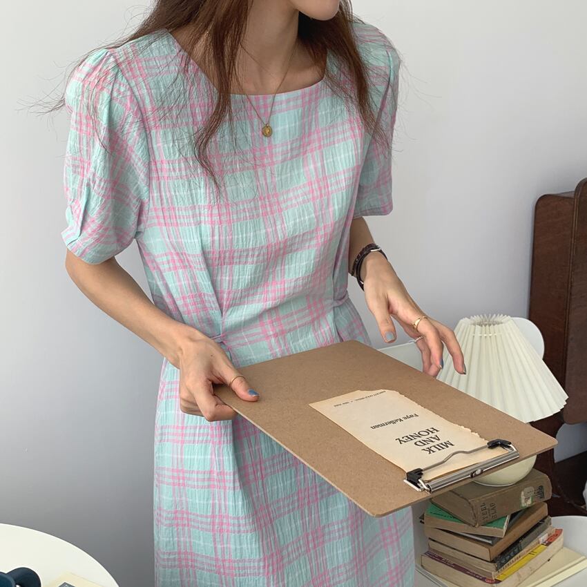 ワンピース チェック スクエア 2カラー 全2色 韓国 レトロ チェック柄 マッチング デザイン ウエストベルトフ Aラインスカート ス ラウンドネック ロング 夏 新しい 春夏 女性用 1枚で完結 大人おしゃれ お祭り おすすめ Aライン ハーフスカート ミディ丈 ブ お出かけ 旅行 普段着 大人女性 大人かわいい プチプラ インポート 海外ファッション ラクチン 涼しげ バックリボン ピンク ブルー お得 送料込み 休日 デート ワンサイズ 女性用 女子会 合コン 綺麗め 上品 おしゃれ 清楚