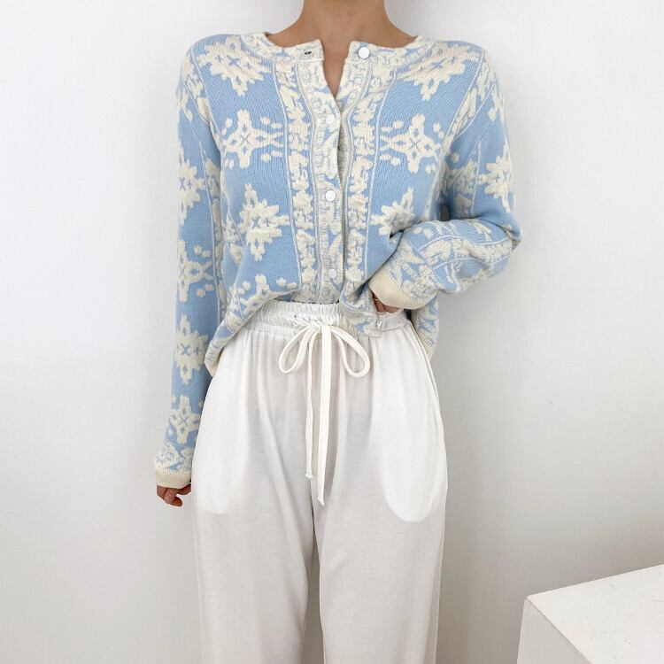 トップス レディース カーディガン 袖あり 長袖 ラウンドネック 襟なし 刺繍 ボタン ボタンダウン 前開き 厚手 青 水色 ブルー ライトブルー 黒 ブラック 柄 花柄 フラワー モノグラム 民族衣装風 エスニック エキゾチック レトロ かわいい 大人可愛い 大人 大人女子 きれいめ おしゃれ お洒落 ラブリー キュート ガーリー 個性的 10代 20代 30代 学生 通学 デート お出かけ 女子会 休日 イベント 普段使い カジュアル こなれ感 ラフ ルーズ 抜け感 冬 重ね着 あったか 暖かい