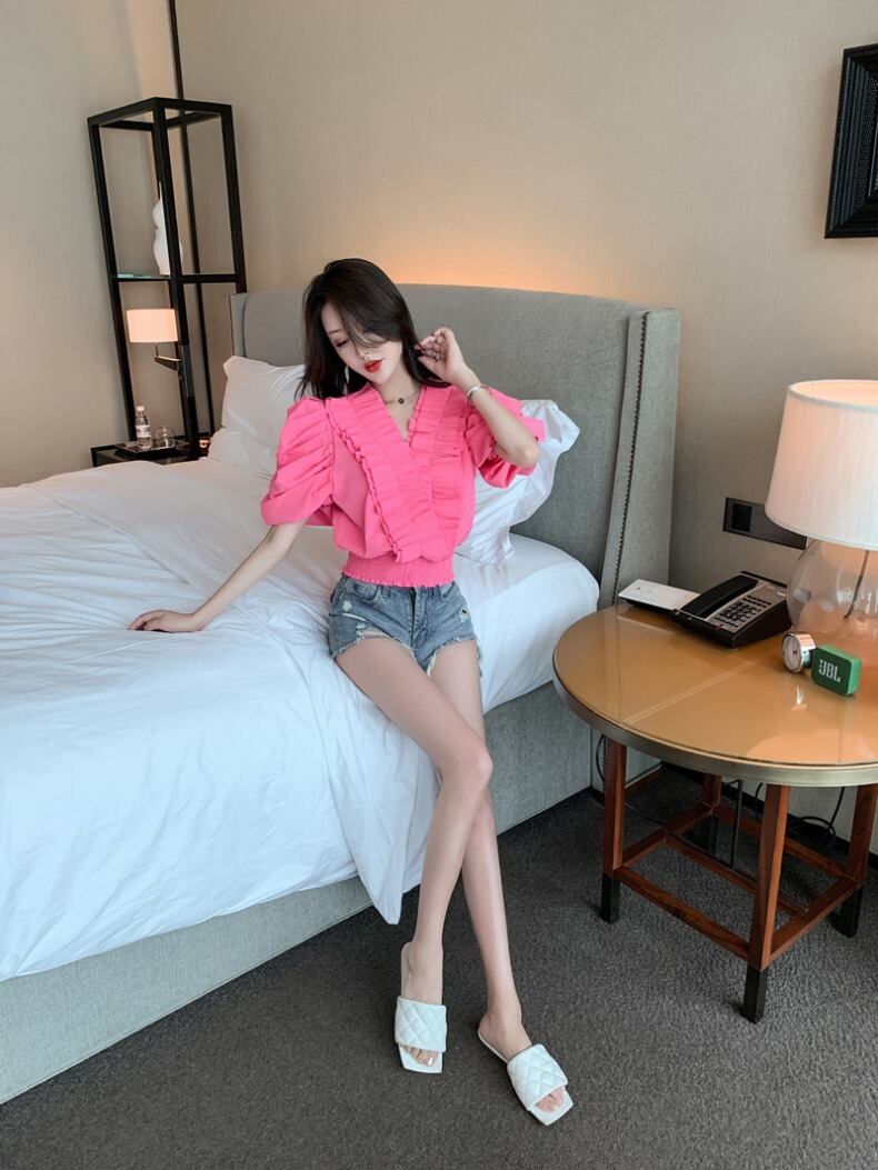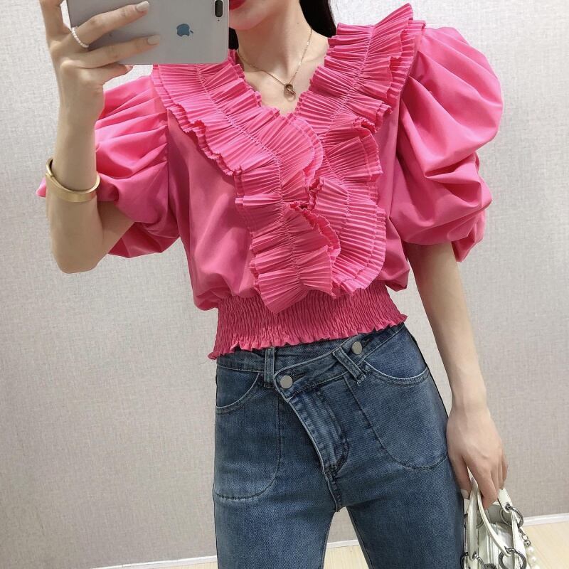 トップス レディース 袖あり 半袖 Vネック 襟なし シャーリング ギャザー 無地 黒 ブラック 白 ホワイト 緑 グリーン ライトグリーン 紫 バイオレット ピンク ローズレッド カラバリ豊富 バブルスリーブ モコモコ もこもこ ボリューム 伸縮性 個性的 かわいい 大人可愛い 大人 大人女子 きれいめ おしゃれ お洒落 シンプル ラブリー キュート ガーリー 10代 20代 30代 学生 通学 デート お出かけ 女子会 休日 イベント 普段使い カジュアル こなれ感 抜け感 リゾート 体系カバー