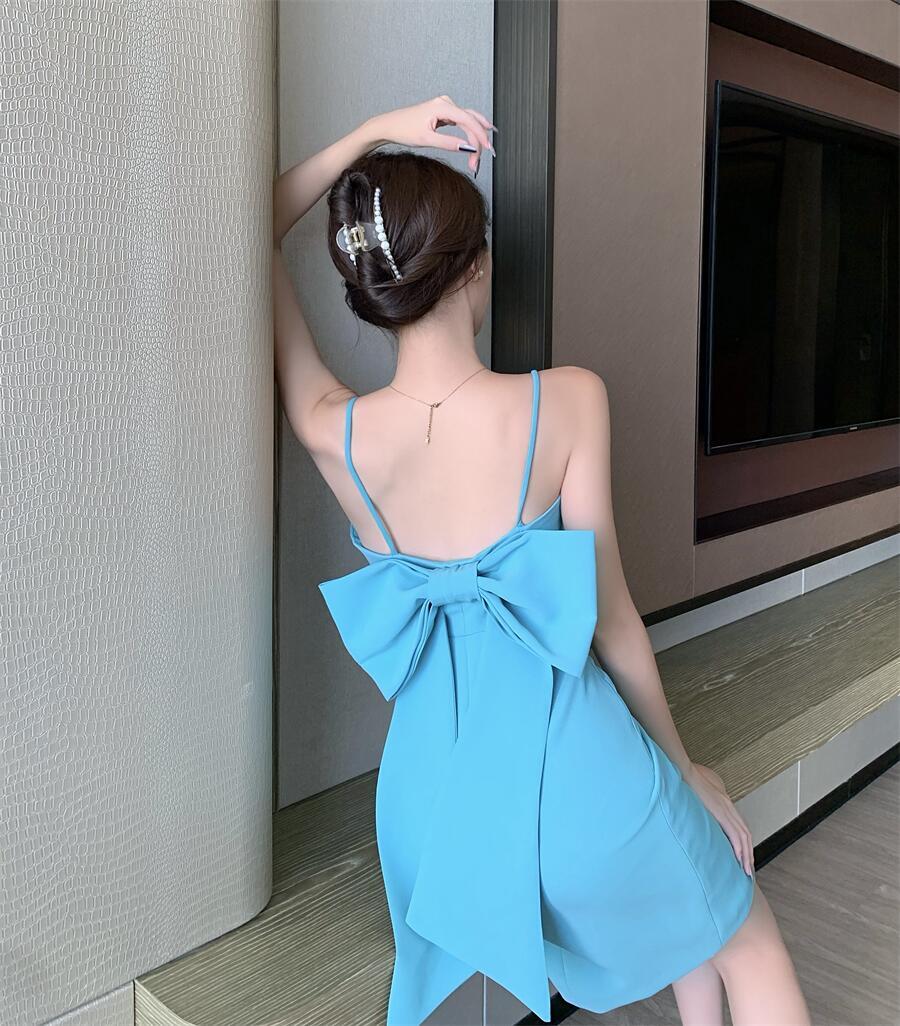 ワンピース レディース キャミワンピース タイトワンピース ひざ丈 膝上 袖なし キャミソール 襟なし スリム タイト 細身 ストレート Iライン リボン バックリボン サイドスリット バックコンシャス ハイウエスト きれいめ 大人 上品 おしゃれ セクシー エレガント 大人可愛い かわいい かっこいい 水色 無地 夏 二次会 披露宴 20代 30代 OL 通勤 学生 デート お出かけ パーティー イベント リゾート 旅行 韓国系 ファッション コーデ モテ 美脚 脚長 インスタ映え スタイル オルチャン