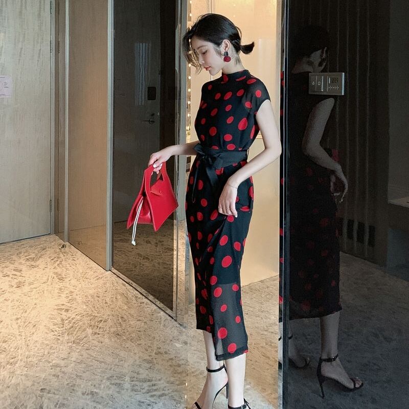 ワンピース レディース 女性用 ポルカドット柄 ウェストリボン シフォン クルーネック マキシ ラウンドネック ロング 半袖 スリム フェミニン ハイウェスト 韓国系 パーティー オフィス エレガント きれいめ 上品 大人可愛い 大人女子 おしゃれ ガーリー レトロ かわいい モード系 アジアン ラブリー キュート 個性的 モダン 大人カラー 通学 学生 OL 通勤 女子会 デート 記念日 母の日 二次会 謝恩会 誕生日 イベント インスタ映え 体系カバー 普段使い 美脚 10代 20代 30代 ママ