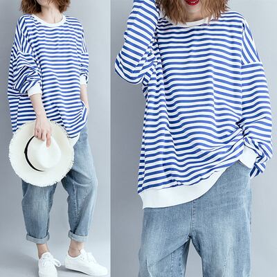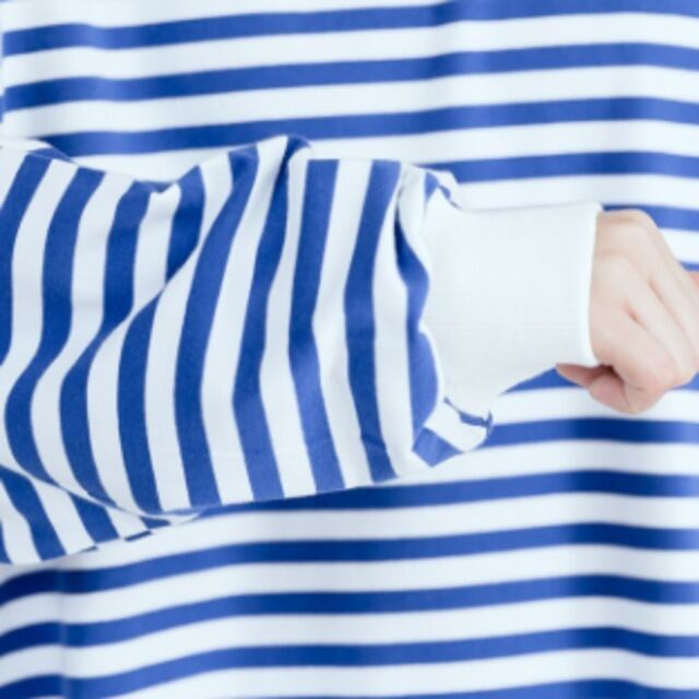 ゆるっとラクチンに、ボーダー柄のシャツです。