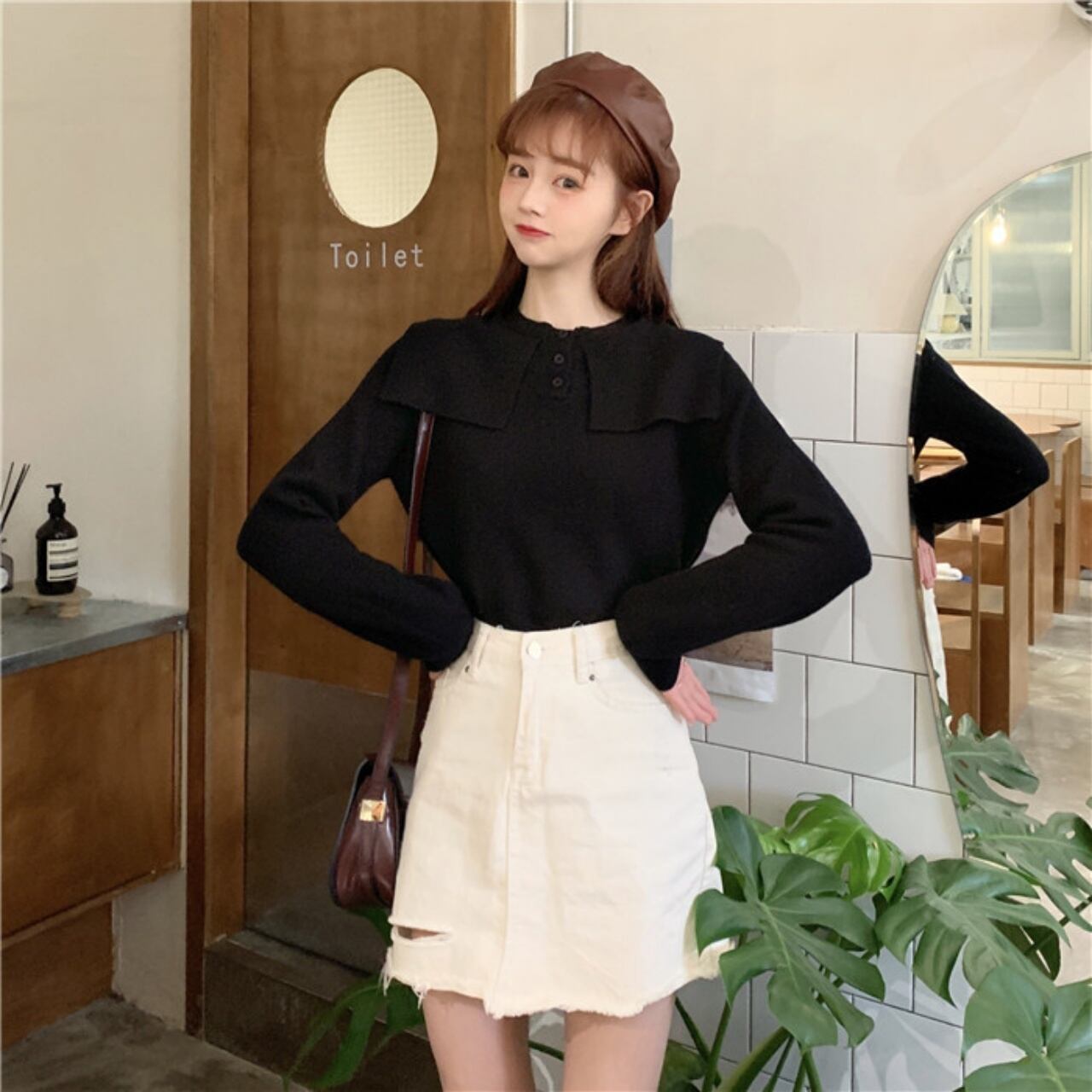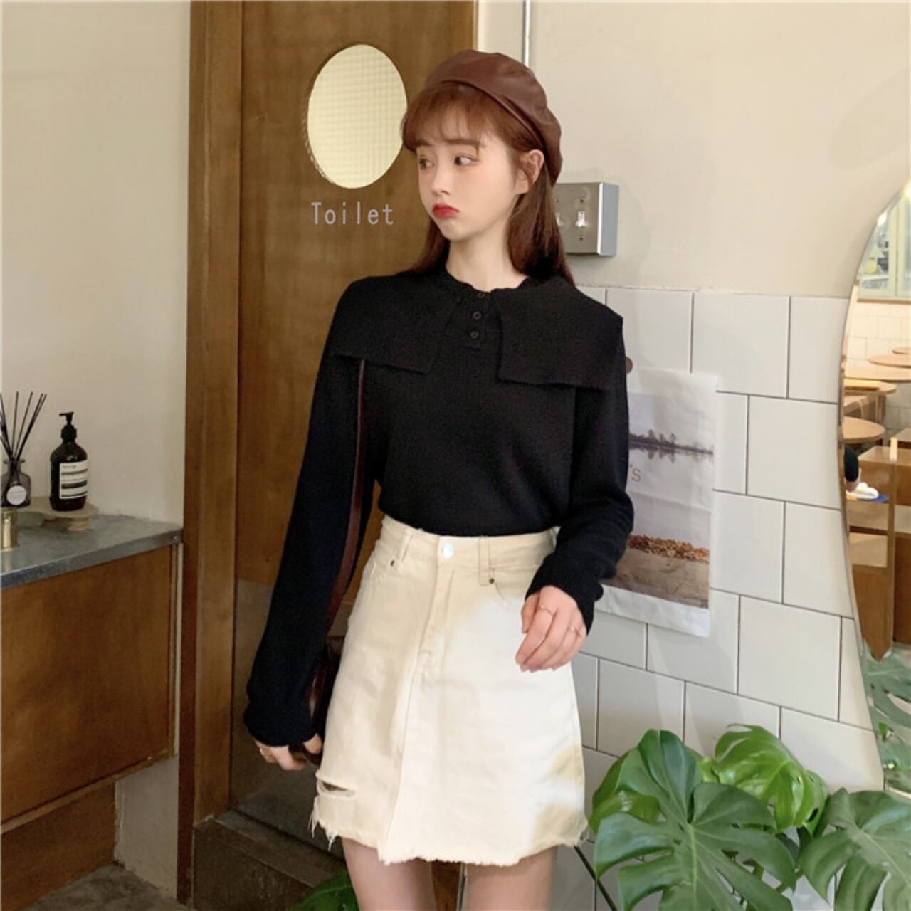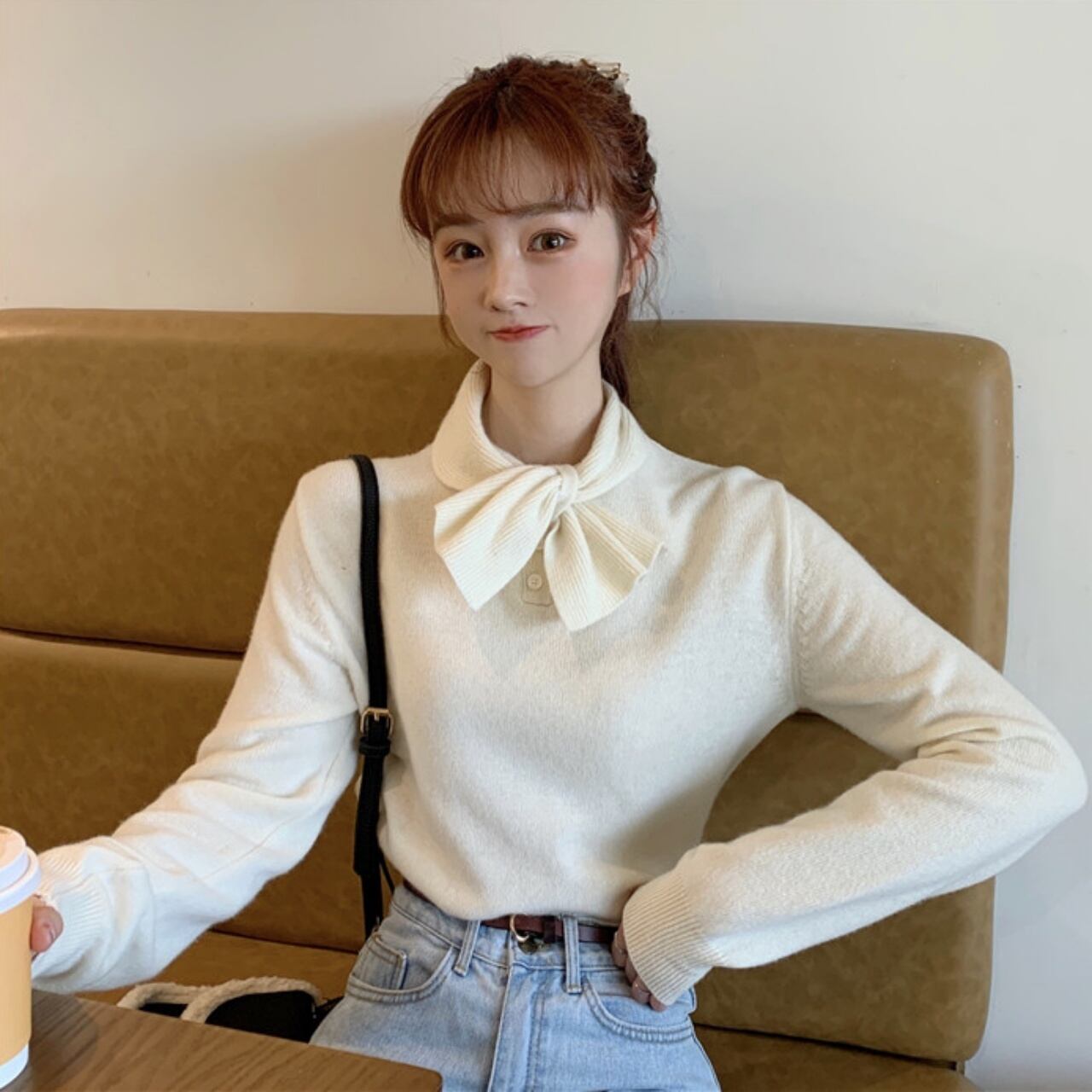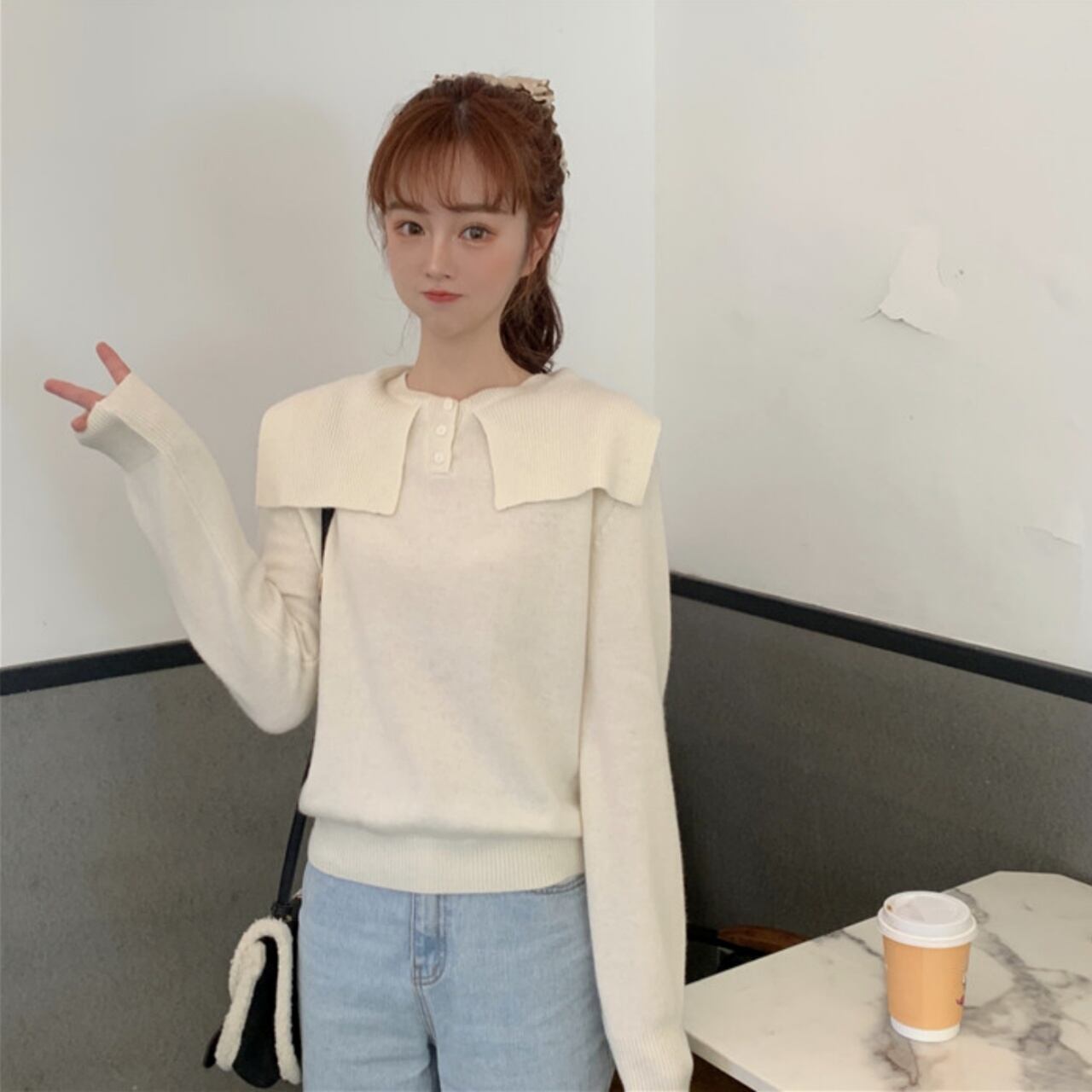 レディース ニット ビックカラーニット 大襟 襟付き スクエアカラー スカーフカラー ボウタイ 2way 前ボタン 袖あり 長袖 クルーネック ウエストリブ 袖口リブ 無地 2色展開 白 ホワイト 黒 ブラック 定番カラー ワンサイズ かわいい 大人可愛い シンプル カジュアル おしゃれ お洒落 こなれ感 キュート 秋冬コーデ 流行 10代 20代 学生 OL ママ 通学着 休日 公園 普段使い お出かけ 旅行 イベント 女子会 着回し 韓国 カジュアルファッション 楽ちんスタイル あったか 定番