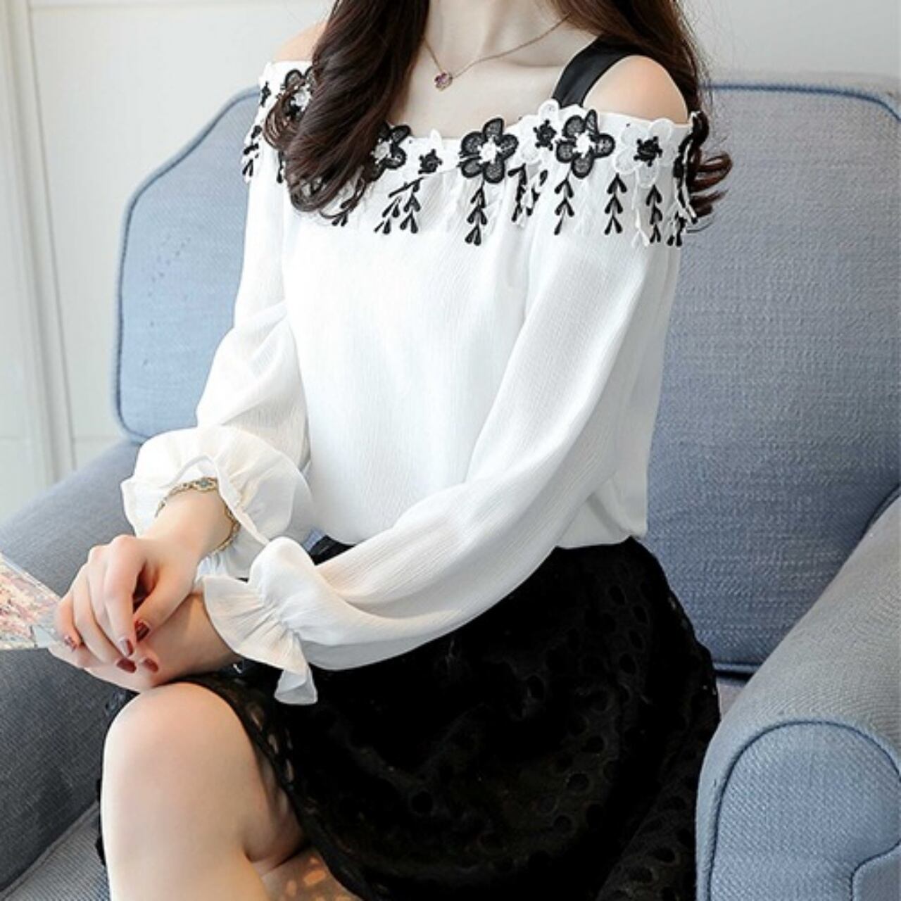 レディース ニット オフショルダーレディース ニット ブラウス 刺繍 花柄 肩紐 透け感 袖あり 半袖 長袖 キャンディースリーブ 手洗い ドライクリーニング かわいい 大人可愛い きれいめ シンプル 大人 上品 大人女子 こなれ感 フェミニン ラブリー キュート フォーマル 抜け感 白 ホワイト 水色 ブルー 5サイズ展開 S M L XL 2XL 柄 夏コーデ 謝恩会 二次会 女子会 イベント 10代20代 学生 OL 通学 普段使い お出かけ デート ホームパーティー 着回し モテ 華やか
