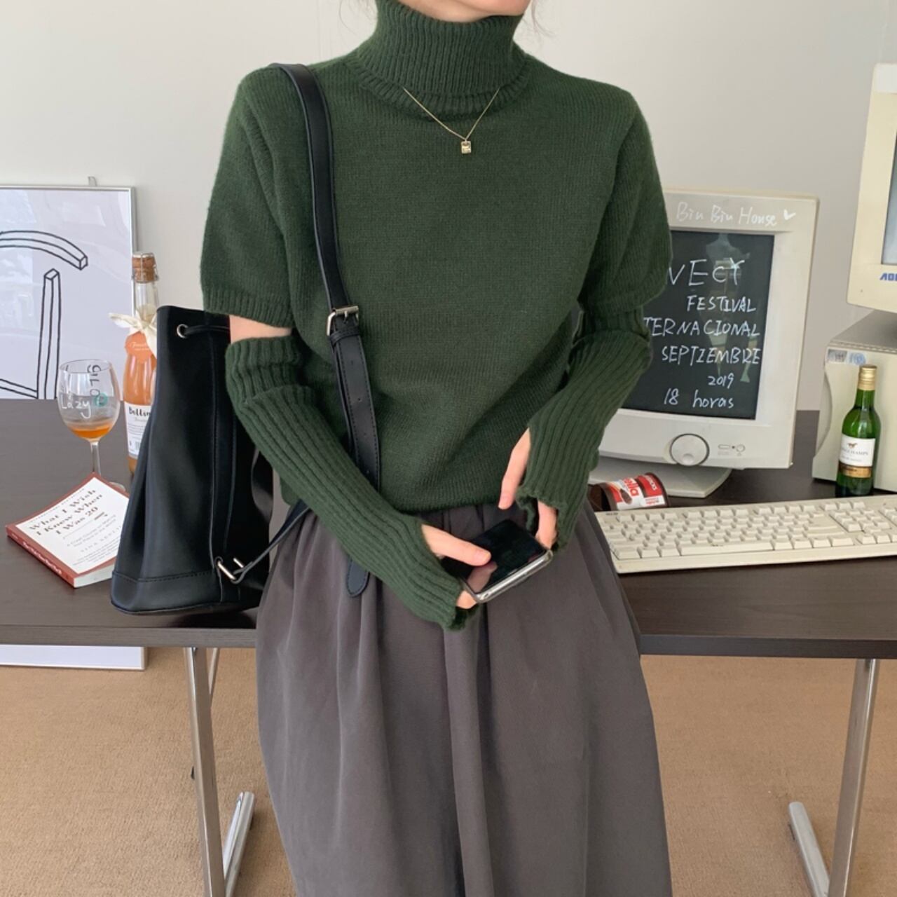 レディース ニット スリーブ付半袖ニット レディース 2way 半袖セーター 袖付き ハイネック プルオーバー ふわふわ かわいい 大人可愛い きれいめ シンプル カジュアルスタイル 大人 上品 おしゃれ こなれ感 ラフ フェミニン ワンサイズ 3色展開 茶 ベージュ 緑 グリーン 黒 ブラック 無地 リブ 秋冬アイテム 秋冬カラー 10代 20代 30代 学生 OL ママ 通学 オフィス 普段着 休日 女子会 デート イベント エレガント フォーマル 着回し ファッション コーデ スタイル モテ 韓国風