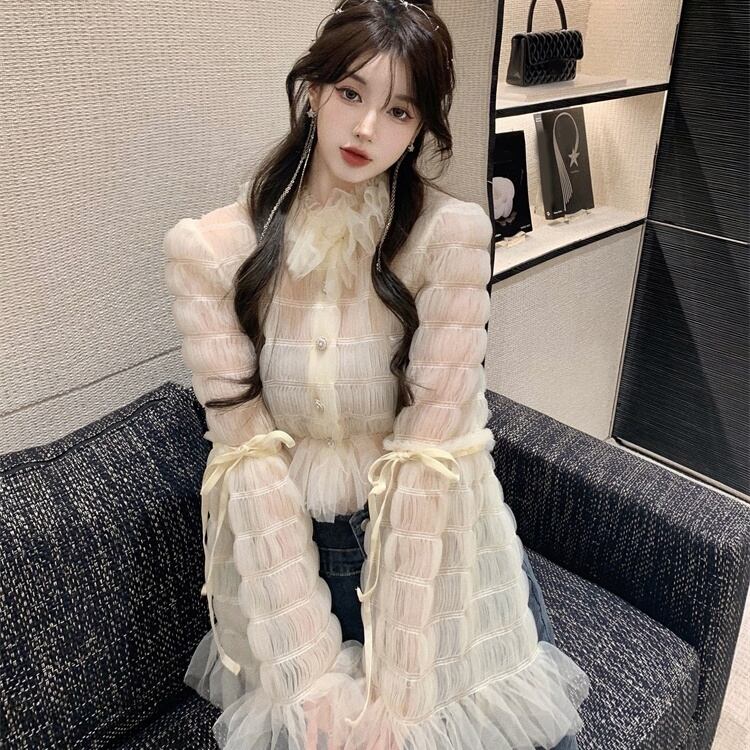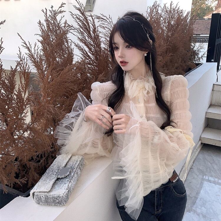 トップス レディース ブラウス 長袖 無地 春 フレア ワイド 裾フレア レース シフォン かわいい 大人可愛い きれいめ シンプル カジュアル 大人 上品 おしゃれ お洒落 大人女子 ラブリー キュート ガーリー 個性的 ハイネック 袖あり くすみカラー 大人カラー ワンサイズ 20代 30代 女性用 学生 通学 デート お出かけ 女子会 休日 パーティー 旅行 着回し 普段使い 韓国 韓国系 オルチャン ファッション コーデ スタイル 楽ちん モテ プチプラ トレンド 流行 インスタ映え