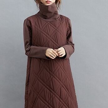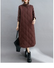 ロング丈のワンピースとハイネックの長袖で、寒い冬でも