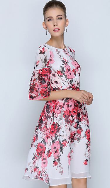 ノースリーブと五分丈が選べる、キュートなシフォンワンピース♪