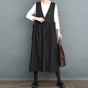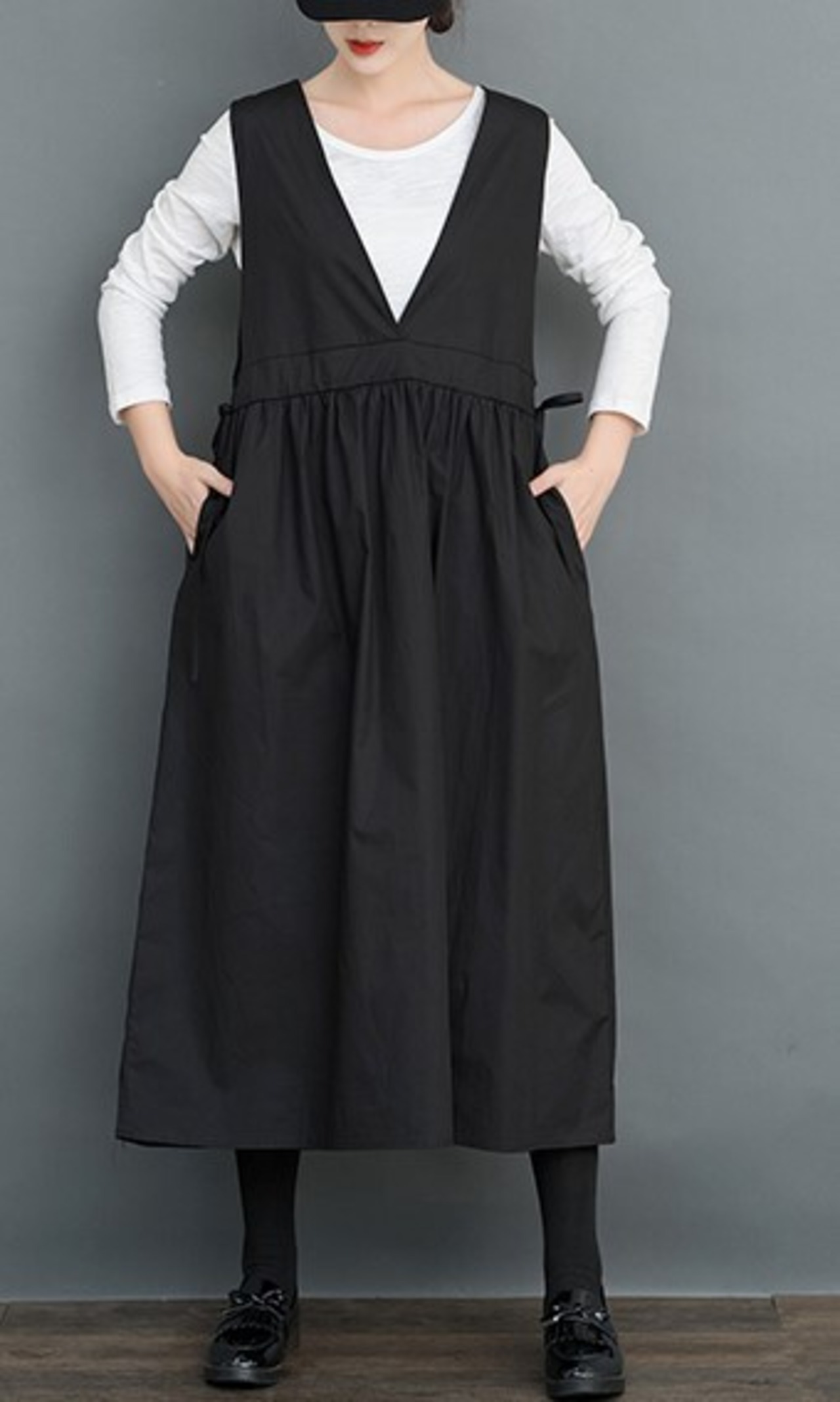 レディースジャンパースカート 黒ジャンスカ ゆったりサイズ 着やすく動きやす 両サイドポケット付き 買い物 デート 10代 20代 30代 40代 無地 ギャザー入り 大人可愛い スカート オールインワン ワンピース ゆったりスカート ビックサイズスカート 秋用ジャンパースカート ギャザージャンパースカート ブラックジャンパースカート Vカットジャンパースカート 両サイド紐付き ひも付き調節自在のジャンパースカート 黒Vカット襟 オールインワン楽ちんジャンスカ 体型カバー 黒ポケット付きジャン