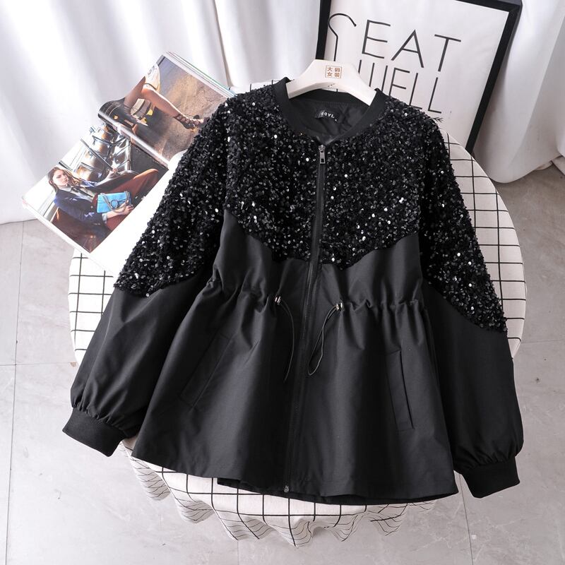 ジャケット レディース 上着 袖あり 長袖 Uネック スパンコール ポリエステル かわいい 大人可愛い おしゃれ お洒落 かっこいい 大人可愛い 大人女子 こなれ感 ラフ メンズライク クール モード系 主役級 存在感 XL 2XL 3XL 4XL 黒 ブラック 光沢 秋 冬 20代 30代 デート お出かけ 女子会 休日 アウトドア パーティー イベント 着回し 韓国 韓国系 オルチャン ファッション コーデ スタイル 楽ちん モテ 新作 トレンド 流行 インスタ映え