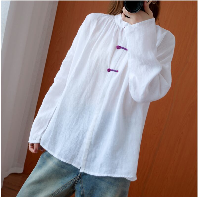レディース麻ブラウス チャイナ風ブラウス 白麻素材 オーバーブラウス 長袖ブラウス 春秋白ブラウス 長袖 スタンドカラーブラウス オーバーチャイナブラウス 体型カバーホワイトブラウス レギュラー袖 ゆったり動きやすい スタンドチャイナカラー 買い物 遊び着 10代 20代 30代 40代 合わせ方自由自在 レギュラーホワイト アウトドア リゾート お洒落可愛いホワイトシャツ 白チャイナシャツ 麻スタンドカラーシャツ 麻素材チャイナ風 買い物 通勤 ビッグサイズオーバーシャツ 白麻ゆったりシャツ 麻チャイナ