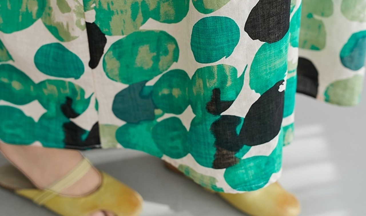 ドット柄が映えるロングワンピース。