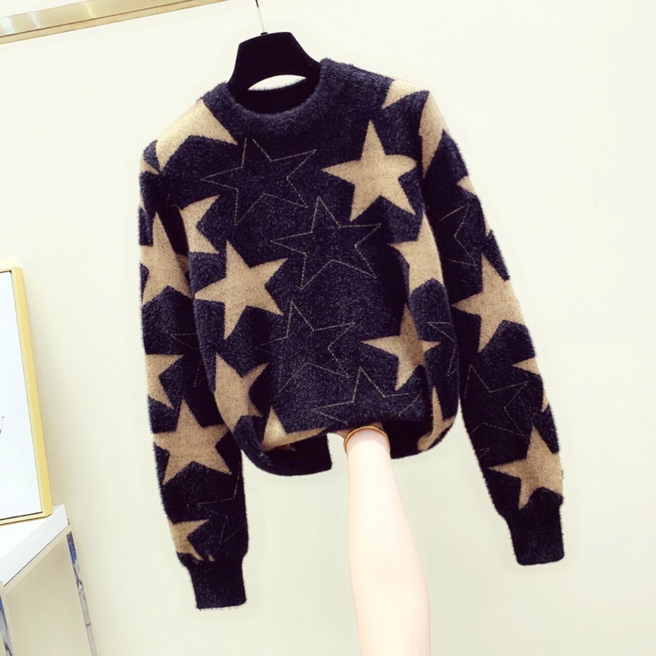 ニット レディース トップス セーター プルオーバー 柄物ニット 星柄 ジャガード 長袖 クルーネック 手洗い ふわふわ もこもこ カジュアルアイテム ナチュラル ラフ おしゃれ かわいい 大人可愛い きれいめ こなれ感 キュート 上品 4サイズ展開 S M L XL 黒 ブラック 秋冬 10代 20代 30代 学生 通学 ママ 公園 普段使い デート お出かけ 女子会 旅行 イベント 着回し 重ね着 韓国系 簡単コーデ ファッション モノトーンコーデ スタイル 楽ちん 暖かい モテ 新作 トレンド