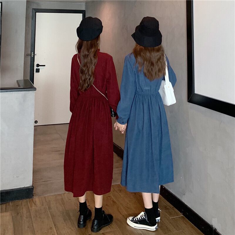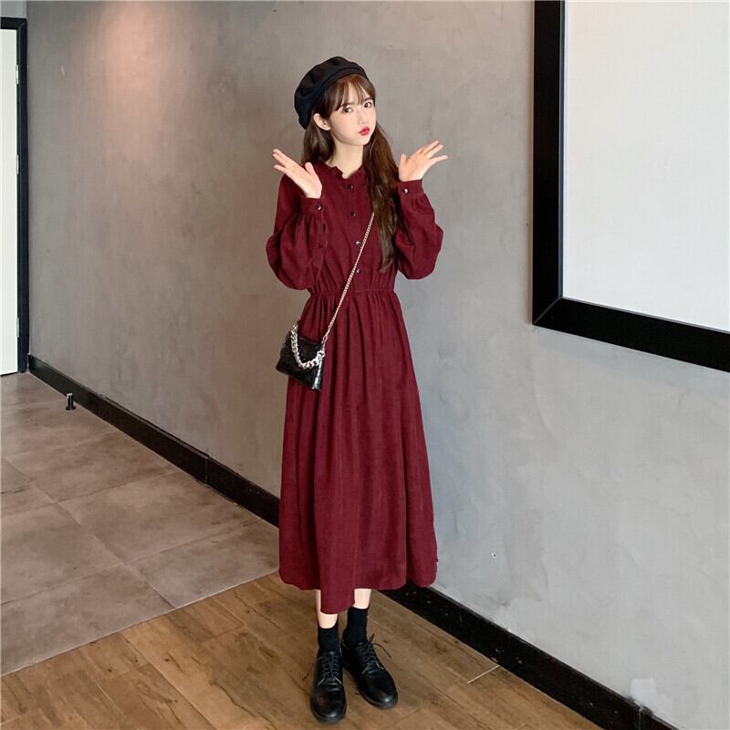 ワンピース ロングスカート パフスリーブ ロング丈 カーキ 赤 レッド 青 ブルー 黒 ブラック 無地 定番 ロング 袖あり 長袖 フリルカラー フリル ギャザー ウエストマーク ボタン ボタンダウン スタンダード かわいい 大人可愛い 大人 大人女子 きれいめ おしゃれ お洒落 シック シンプル ラブリー キュート ガーリー フェミニン 10代 20代 30代 通勤 学生 通学 デート お出かけ 女子会 休日 普段使い カジュアル こなれ感 ラフ ルーズ 抜け感 ゆったり ゆる モテ 上品 エレガント