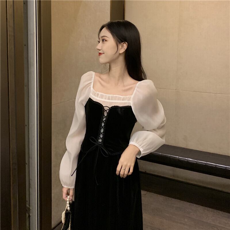 ワンピース フェイクワンピース シースルー 光沢 編み上げ 白 ホワイト 黒 ブラック ベージュ ミモレ丈 ミモレ トレンド 人気 長袖 ボリューム袖 スクエアネック 襟なし フリル チュール 透け感 かわいい 大人可愛い 大人 大人女子 きれいめ おしゃれ お洒落 シンプル ラブリー キュート ガーリー フェミニン 10代 20代 30代 通勤 学生 通学 デート お出かけ 女子会 休日 普段使い カジュアル こなれ感 抜け感 ゆったり ゆる 上品 エレガント セクシー 二次会 披露宴 パーティー