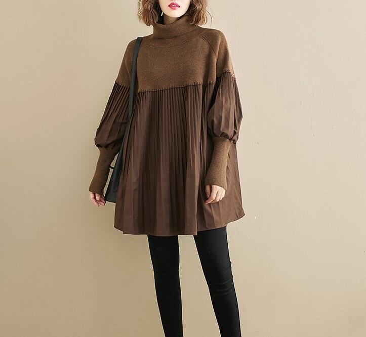 レディースニット ボンドタートル 長袖 プリーツ 秋冬物 チュニック アクリル プリーツチュニック タートルネック 通学 10代 20代 30代 40代 キュート 無地 セーター 通勤 デート 長袖 体型カバー レトロ トップス レトロニット カジュアル プリーツチュニック ハイネックチュニック エレガント ショッピング リゾート 女子会 ニットハイネック プリーツ アクリル ゆったり アクリルチュニック プリーツセーター ブラック ブラウン 秋冬チュニック オーバーチュニック タートルニット スモック