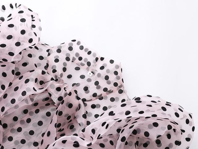 ドット 水玉 シフォン ブラウス トップス レディース リボンタイ 半袖 全4カラー ピンク ホワイト ブルー ブラック 5分丈 柄 ショート丈 シースルー 透け感 春 夏 秋 パフスリーブ 襟 レトロ ネクタイ 全4サイズ S M L XL ネクタイ 重ね着 着回し キュート ガーリー 可愛い 韓国 韓国風 オルチャン カワイイ ヒラヒラ おしゃれ お洒落 大人女子 大人可愛い イベント 双子コーデ お揃い 色違い 普段着 普段遣い フェミニン こなれ感 ラブリー ルーズ 個性的 主役級 存在感