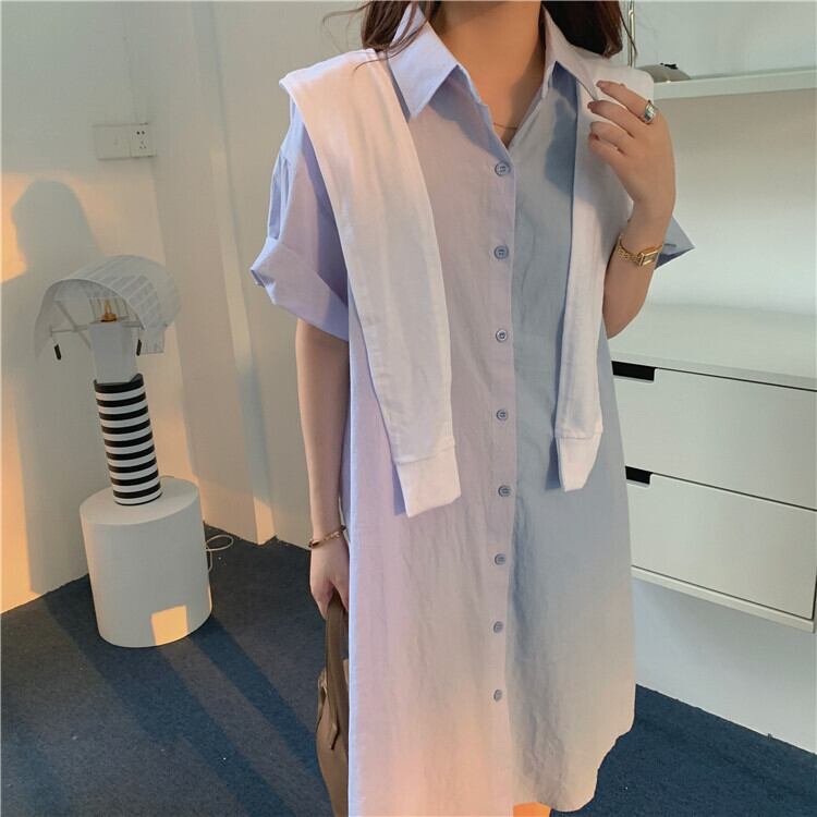シャツ ワンピース ワンピ ミディアム丈 ミディ シャツ風ワンピース ブルー ピンク 大き目 ビッグサイズ 夏 デザイン ニッチ フレンチ シック トップシャツ 女性 ミドル 半袖 薄いシャツ 切り替えし Aラインワンピース ミディアム丈 ミディ スクエアネック フレンチ リトルスカート 大人可愛い きれいめ 上品 シンプル アジアン 大人女子 ガーリー キュート 大人カラー 春 夏 謝恩会 二次会 休日 お出かけ 記念日 デート 女子会 イベント パーティートレンド 人気 体型カバー ランキング