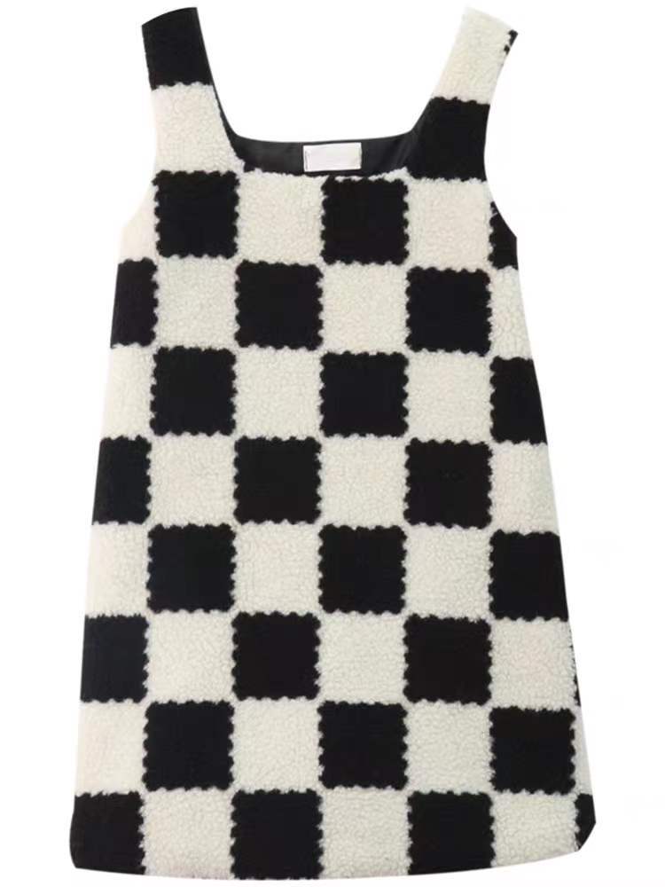 ワンピース ミニスカート ショート丈 モノトーン チェック ブロックチェック 市松模様 チェス 厚手 膝上 袖なし ノースリーブ Uネック ラウンドネック 襟なし 黒 ブラック 白 ホワイト もこもこ モコモコ かわいい 大人可愛い レディース 大人 大人女子 きれいめ おしゃれ お洒落 シンプル ラブリー キュート ガーリー フェミニン 10代 20代 30代 通勤 学生 通学 デート お出かけ 女子会 休日 普段使い カジュアル こなれ感 ラフ ルーズ 抜け感 ゆったり ゆる パーティー イベント
