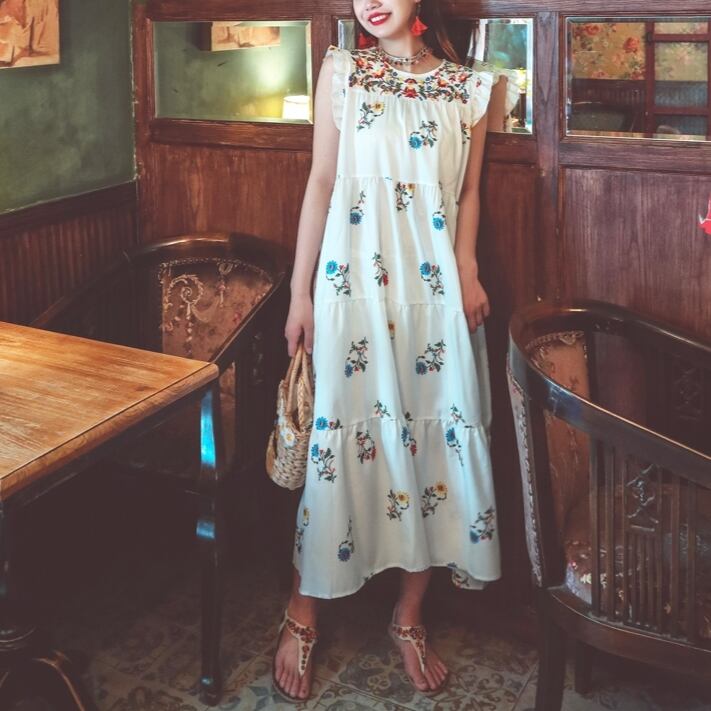 ワンピース ワンピドレス ドールドレス エスニックスタイル 新作 刺繍 ステッチ プリント レトロデザイン アジアンチック ボヘミアン ホリデードレス ノースリーブ 体型カバー 優れもの 妊婦さん サマードレス ゆるかわファッション インポートデザイン 外国風 ベストスカート かわいい 大人可愛い 大人 大人女子 きれいめ おしゃれ シンプル ラブリー キュート ガーリー 学生 OL デート お出かけ 女子会 休日 イベント カジュアル 普段使い こなれ感 ラフ 夏 海 リゾート 旅行 映える おススメ