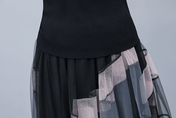 セットアップ レディース 黒トップス チュールスカート ロング丈 ミモレ丈 袖あり 5分袖 スクエアネック 襟なし フレア Aライン チュール 切り替えデザイン 透け感 ツーピース 大人可愛い きれいめ 大人 上品 おしゃれ かっこいい 大人女子 こなれ感 セクシー エレガント ブラック 無地 夏 二次会 10代 20代 30代 OL 通勤 学生 通学 デート お出かけ 女子会 パーティー イベント リゾート 旅行 着回し 普段使い ファッション コーデ スタイル モテ 体系カバー 脚長 インスタ映え