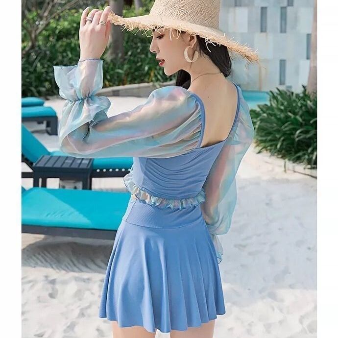 水着 レディース 女性用 シースルー フロントリボン フリル フェアリー ワンピースタイプ ボクサーパンツ ロングスリーブ スクエアネック パフスリーブ 無地 日焼け止め かわいい 大人可愛い シンプル カジュアル アジアン ガーリー キュート ラブリー 存在感 モダン 韓国系 10代 20代 ママ OL 学生 旅行 ビーチ プール アウトドア ナイトプール フェス イベント 女子会 誕生日 デート リゾート カフェ お出かけ 休日 オルチャン 体系カバー 脚長 美脚 モテ インスタ映え 双子 夏