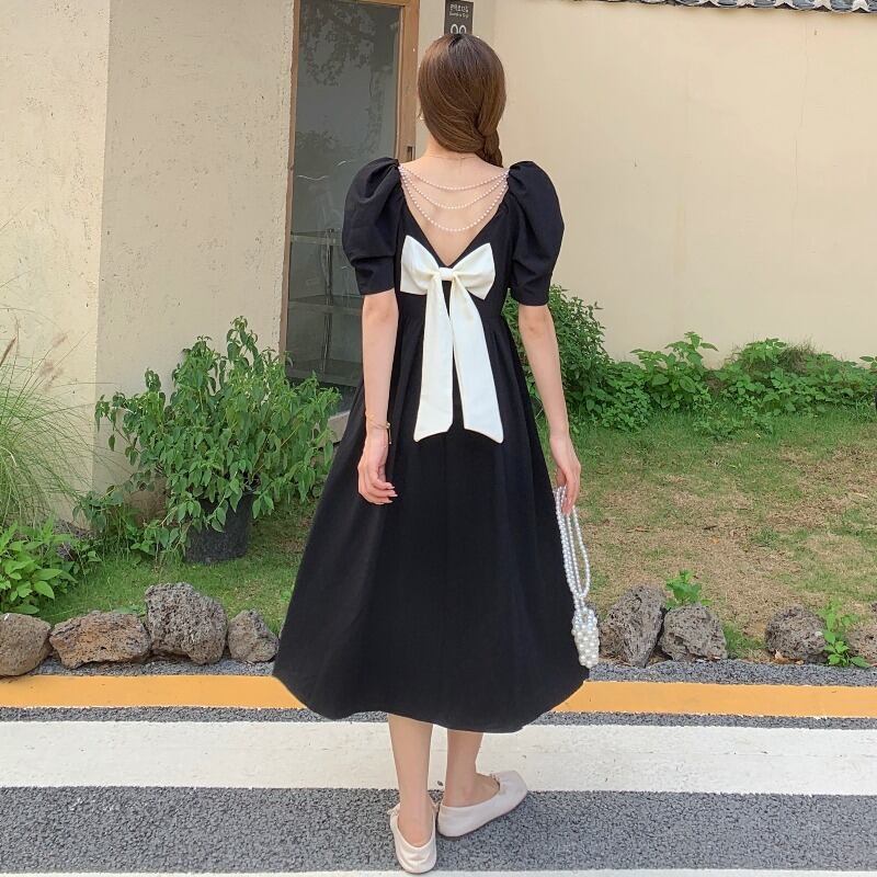 ワンピース パフスリーブ ワンピ ミディアム ミディアム丈 ミディ フレアースカート フレアー Aライン リボン バックリボン グリーン ブラック 夏 新しい スカート ウエスト 穏やか ドレス インポート ファッション 海外 ネット ランキング キュート ガーリー 体系カバー 楽ちん モテ スタイル コーデ 韓国系 普段使い 着回し デート 海 旅行 リゾート イベント アウトドア 休日 女子会 お出かけ OL 通勤 学生 通学 夏 10代 20代 30代 きれいめ おしゃれ カジュアル かわいい