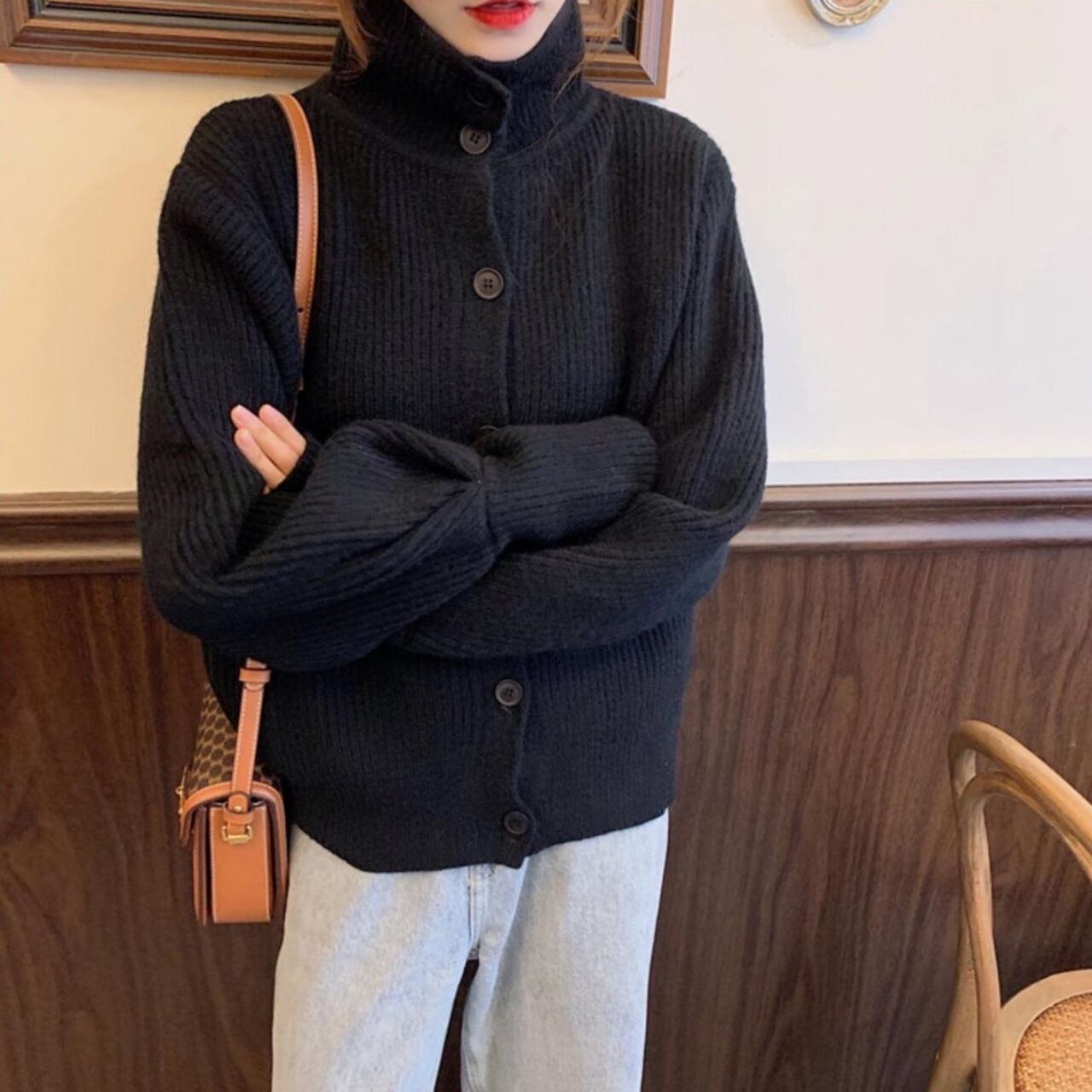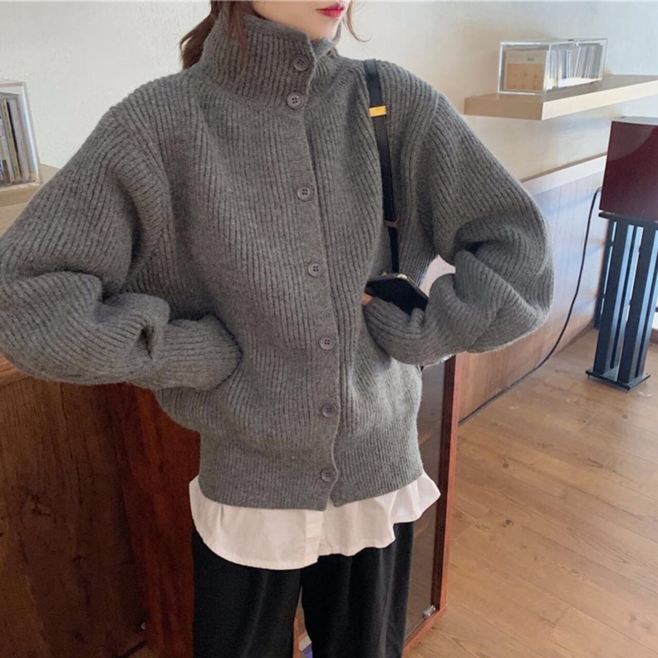 カーディガン レディース ニット タートルニット ハイネック ミディアム フロントボタン リブ ケーブルニット ざっくり ゆったり 長袖 袖長め 無地 かわいい 大人可愛い カジュアル おしゃれ ラフ こなれ感 ルーズ 抜け感 4サイズ展開 ブラウン グレー ブラック 秋カラー 10代 20代 30代 40代 オフィス OL 学生 通学 デート お出かけ ショッピング 公園 女子会 アウトドア イベント 旅行 着回し 重ね着 韓国 ファッション コーデ 簡単コーデ あったか 体型カバー モテ 流行