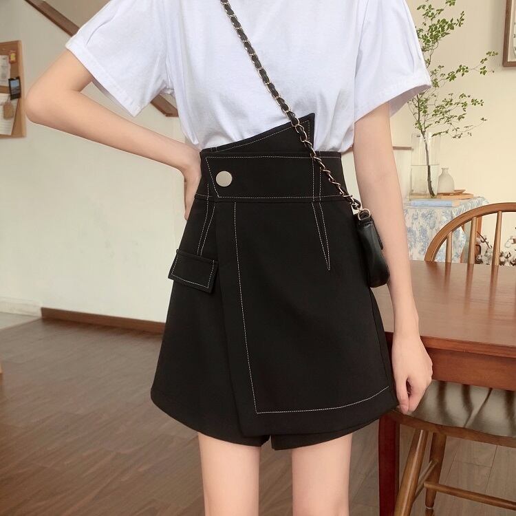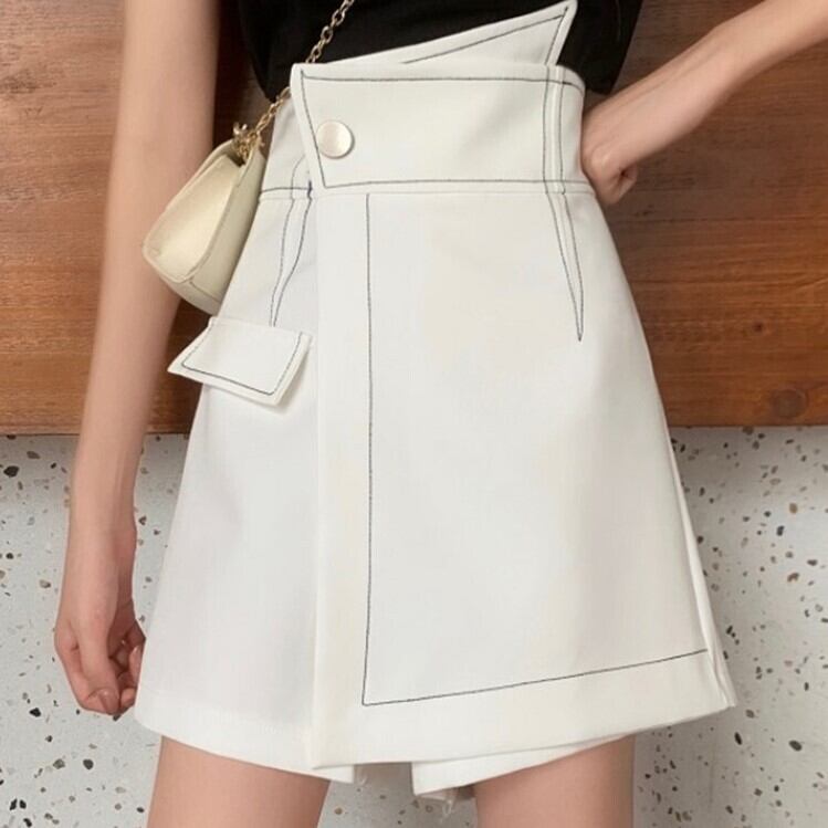 ショートパンツミニスカート ミニ ラップ風 スカート アシンメトリースカート ブラック ホワイ ト切り替え ステッチ ハイウエスト 不規則 ホットガール ハーフ レングス ショート トップライン Aライン ワイド レッグ 女性 夏 韓国版 オルチャン 韓国スタイル 休日 お出かけ 海外ファッション カジュアル 人気 ランキング インポート デート 女子会 イベント パーティートレンド 人気 体型カバー インポートファッション 海外 ネット ランキング アジアンスタイル ゆったり イベント お出かけ