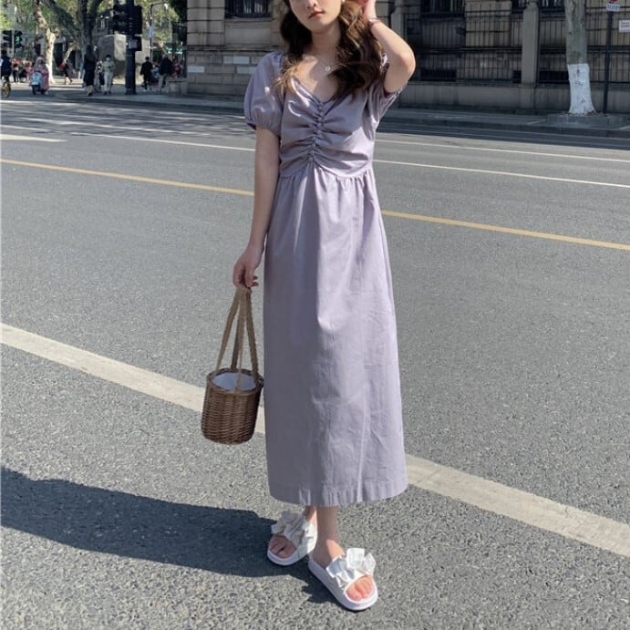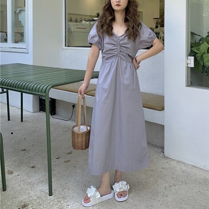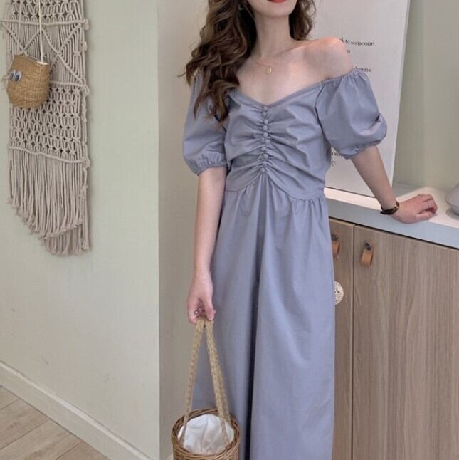 ワンピース Aラインワンピース ワンピ パフスリーブ シャーリング オールインワン フロント ボタンウエスト 切り替えし ボタン S M グレー Vネック スカート ミドル丈 ウエスト 半袖 ドレス 婦人服 ストレート かわいい 大人可愛い きれいめ シンプル カジュアル 大人 上品 おしゃれ お洒落 大人可愛い 大人女子 こなれ感 モード系 セクシー 主役級 存在感 夏 20代 30代 デート 女子会 休日 パーティー 韓国 韓国系 オルチャン コーデ スタイル モテ 新作 定番 プチプラ トレンド