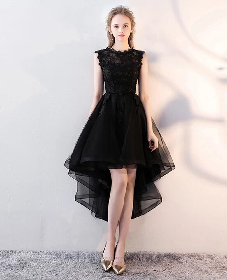 ブラックドレス フィッシュテール ノースリーブ レディース ワンピース ノースリーブ レース ラウンドネック チュールドレス シフォン アシメ丈 おしゃれ トレンド ゴージャス エレガント ふんわり 透け感 襟レース フラワーモチーフ フローラル 裾長め バックシャン 後ろファスナー 着やすい サイズ豊富 パーティー フォーマル 食事会 謝恩会 女子会 舞台 舞台衣装 ダンス 結婚式 二次会 披露宴 着たいドレス 韓国 韓国ファッション 低価格 お買い得 ママドレス エレガントママ イブニング 低予算