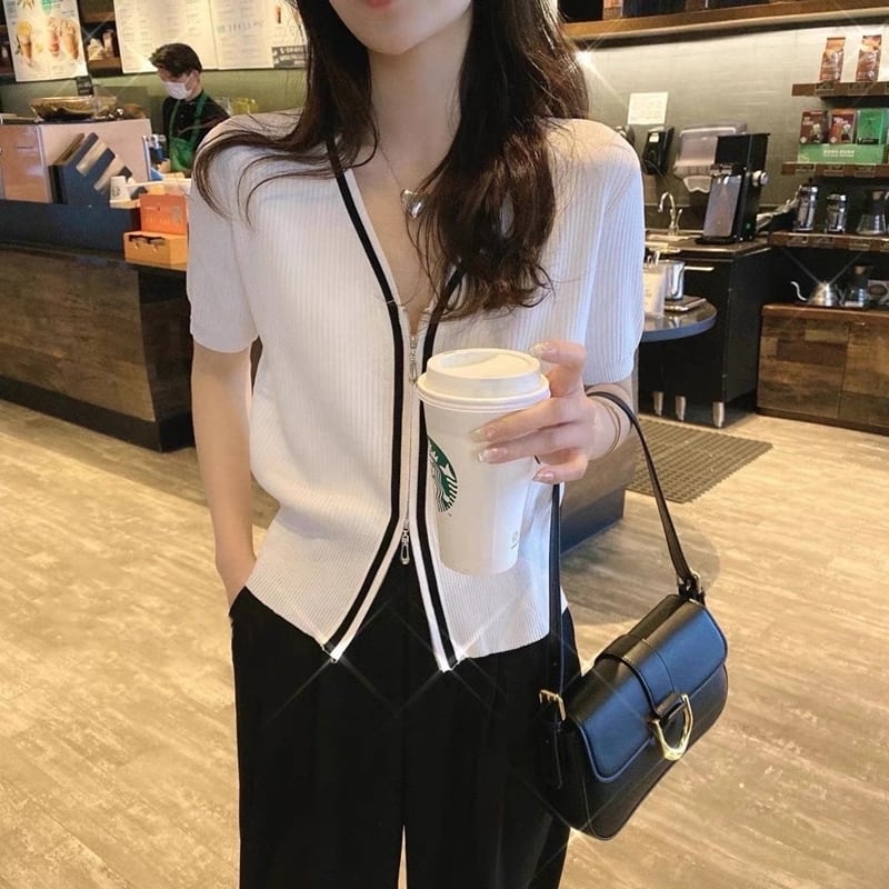 ニットカーディガン ジャケット トップス トップ ショート丈 ブラック ホワイト 黒 白 新作 デザイン重視 新しい フロントジッパー 秋 冬 お得 人気 カジュアル 普段着 普段使い 着回し レディースファッション 婦人服 着回し 普段使い お出かけ お呼ばれ パーティー 二次会 飲み会 合コン 女子会 通勤 通学 10代 20代 30代 40代 50代 プレゼント お祝い ディナー こなれ感 高見えファッション オールマッチ Vネックカーディガン アウター 無地 スリングニット 切り替えしステッチ