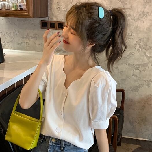 トップス レディース ブラウス パフスリーブ 袖あり 人気 半袖 ボリューム袖 フリル かわいい 大人可愛い きれいめ シンプル カジュアル おしゃれ お洒落 大人可愛い 大人女子 こなれ感 ラブリー ガーリー M L XL 白 ホワイト 青 ブルー 紫 パープル パステルカラー 無地 夏 20代 30代 通勤 学生 通学 デート お出かけ 公園デビュー 女子会 休日 イベント 着回し 普段使い 韓国 韓国系 オルチャン ファッション コーデ スタイル モテ 体系カバー 新作 トレンド 流行 インスタ映え