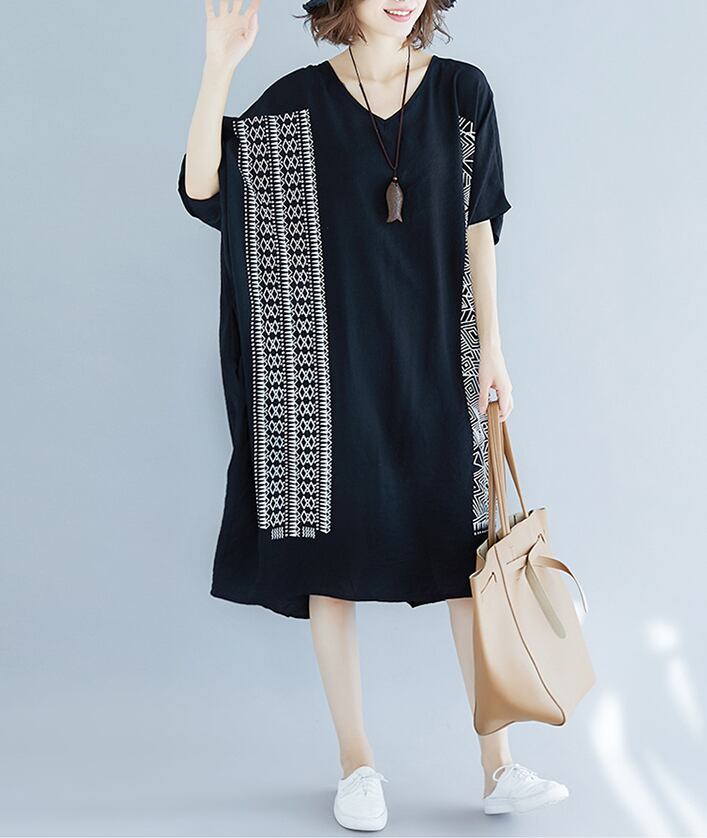 シャツワンピース ビッグサイズ ビッグシルエット レディース ラフ ゆるシルエット 大きいサイズ ワンサイズ 全3色 ホワイト ブルー ブラック 白 黒 青 Vネック 春 夏 秋 膝丈 膝下 重ね着 着回し おしゃれ お洒落 大人女子 大人可愛い 普段着 普段遣い ルーズ 楽ちん 体型カバー 通勤 通学 オフィス お出かけ デート 公園デビュー 休日 10代 20代 30代 40代 50代 カジュアル 5分丈 可愛い 韓国 韓国風 オルチャン カワイイ プリント 幾何学模様 エキゾチック 個性的 モダン