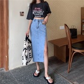 スカート デニム スリット ミディアム 丈 ミディ ブラック ブルー ジーンズ タイト タイトスカート 大人クール デザイン センス プリット デニムスカート ハーフレングススカート 女性 夏 新作 ハイウエスト Aライン ミドル丈 重ね着 着回し キュート ガーリー 可愛い オルチャン カワイイ おしゃれ お洒落 大人女子 大人可愛い 普段着 普段遣い ルーズ 楽ちん 体型カバー 通勤 通学 公園 オフィス お出かけ デート 公園デビュー 休日 アウトドア 10代 20代 30代 40代 カジュアル