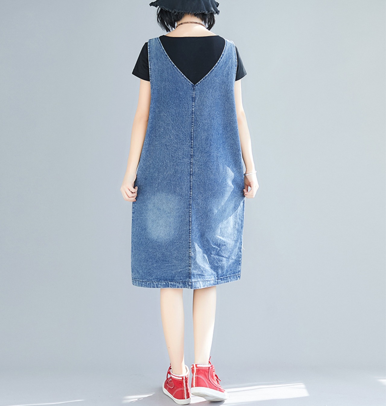 ジャンパースカート サロペットスカート 大きいサイズ ビッグシルエット レディース ラフ ゆるシルエット 全4サイズ M L XL XXL ブルー デニム Vネック 春 夏 秋 冬 重ね着 着回し おしゃれ お洒落 大人女子 大人可愛い 普段着 普段遣い ルーズ 楽ちん 体型カバー 韓国 韓国風 オルチャン 通勤 通学 お出かけ 休日 10代 20代 30代 40代 50代 カジュアル カッコいい こなれ感 ガーリー ひざ丈 膝丈 スリット ポケット シンプル スポーティ マニッシュ レトロ ワンピース
