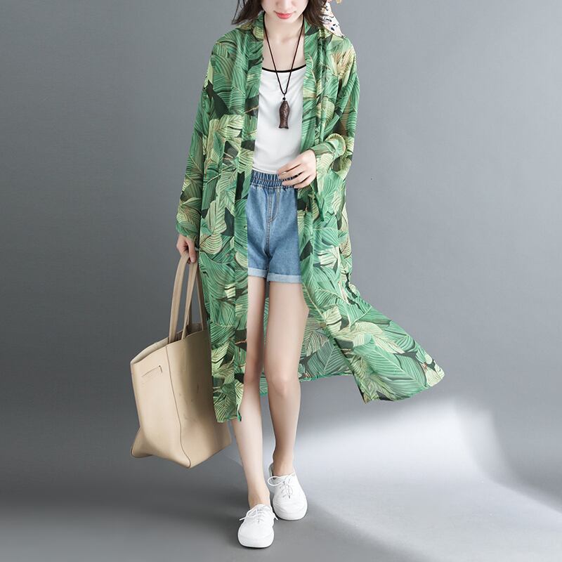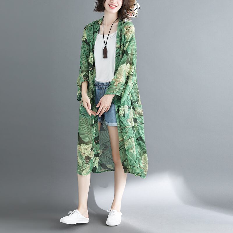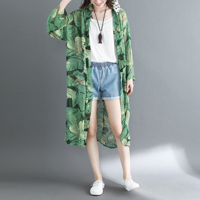 ジレ シフォン 上着 アウター 羽織 カーディガン 大きいサイズ ビッグシルエット レディース ラフ ゆるシルエット ワンサイズ リーフ柄 グリーン 緑 ロングジレ 重ね着 着回し おしゃれ お洒落 大人女子 大人可愛い 普段着 普段遣い ルーズ 楽ちん 体型カバー 韓国 韓国風 オルチャン お出かけ 休日 リゾート 10代 20代 30代 40代 50代 カジュアル カッコいい こなれ感 ひざ丈 膝丈 ヒラヒラ シースルー 海 夏 秋 日焼け防止 インスタ映え 旅行 イベント アウトドア ボタニカル