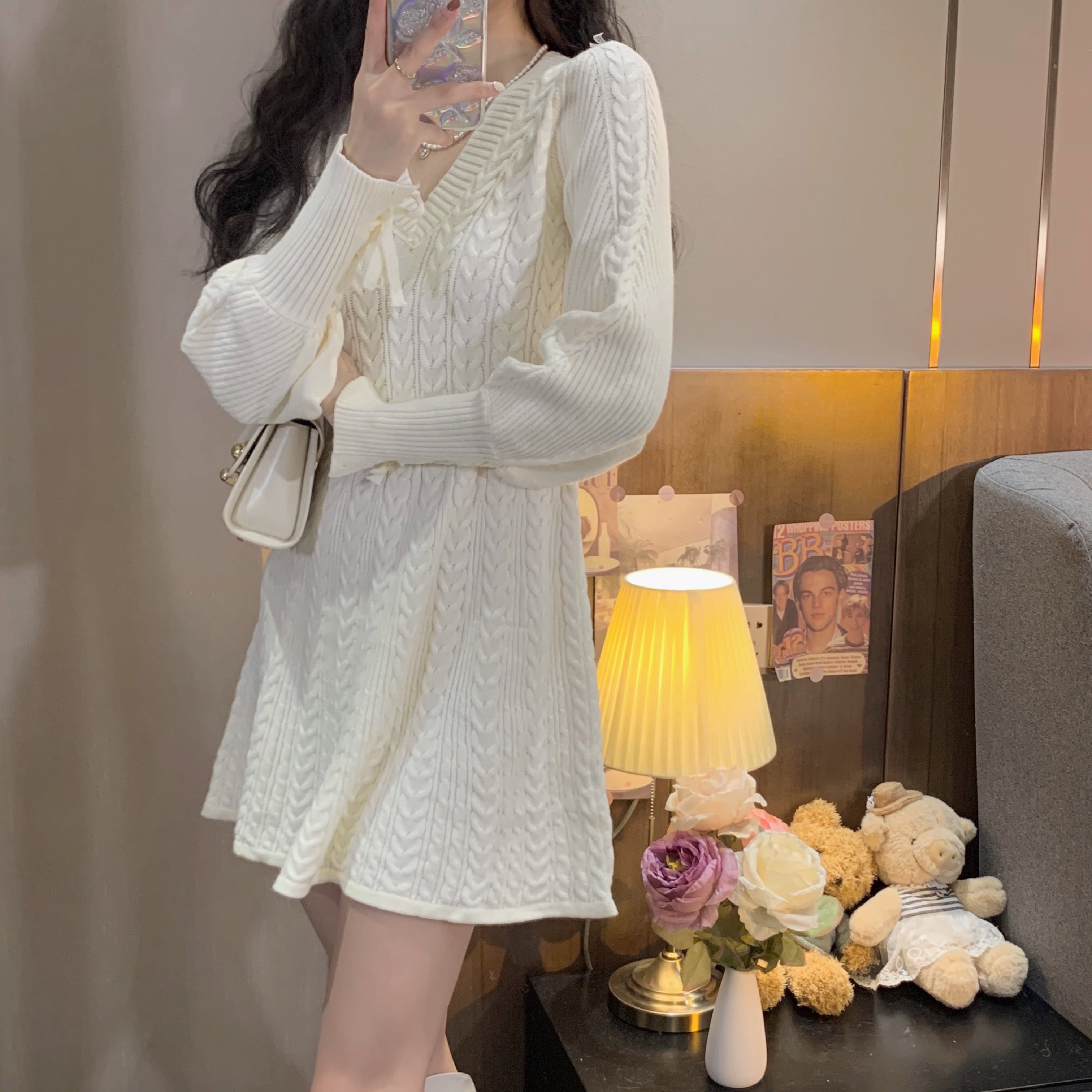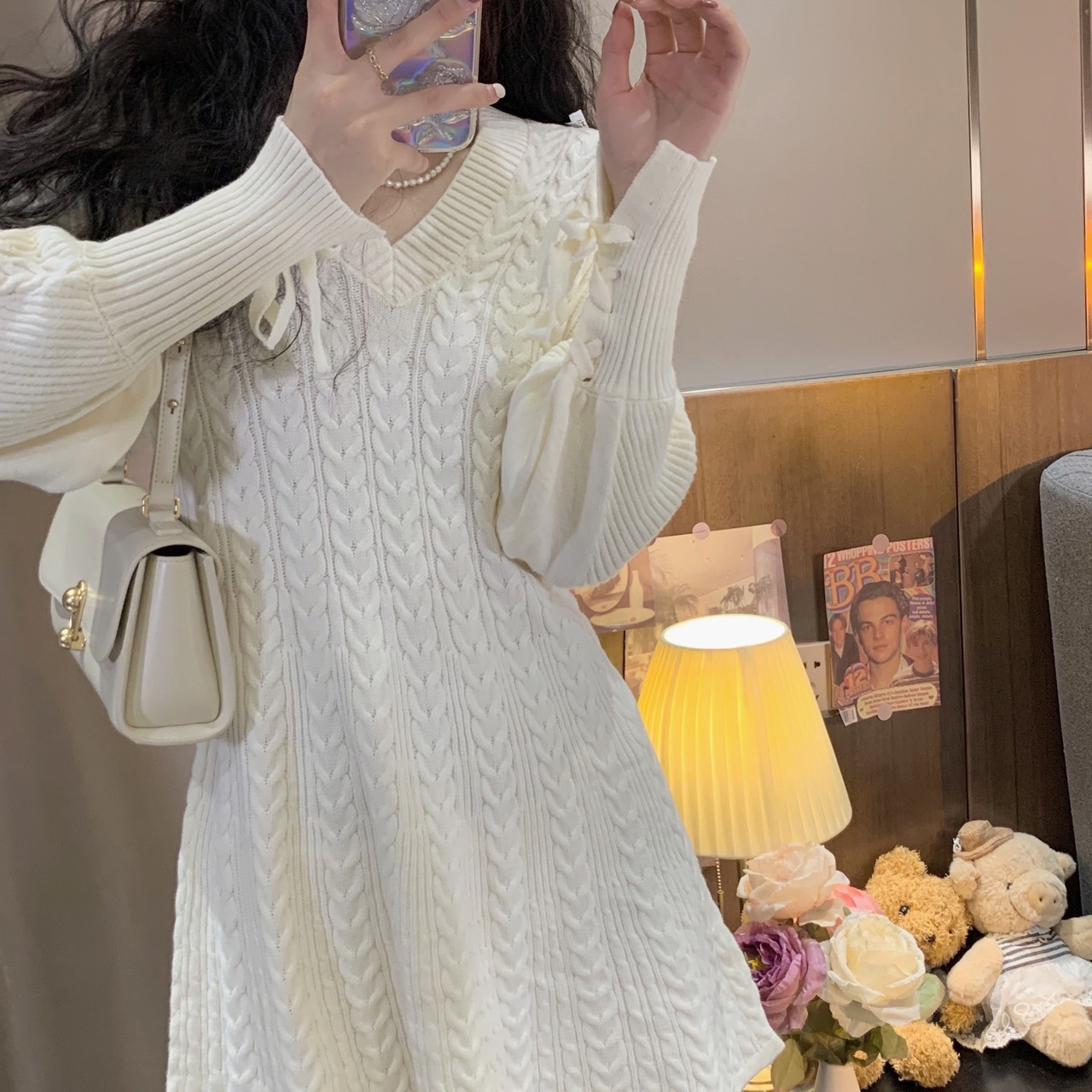 ワンピース ニットワンピース パフスリーブ リブ編み 白 ホワイト かわいい 大人可愛い 人気 ニットスカート ミニスカート ミニ丈 ショート丈 長袖 Vネック 襟なし リボン リブニット 大人 大人女子 きれいめ おしゃれ お洒落 シンプル ラブリー キュート ガーリー フェミニン 10代 20代 30代 通勤 学生 通学 デート お出かけ 女子会 休日 普段使い カジュアル こなれ感 ラフ ルーズ 抜け感 ゆったり ゆる 上品 とろみ感 エレガント 二次会 披露宴 パーティー イベント ふんわり