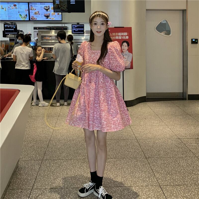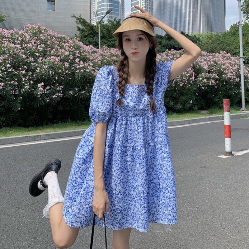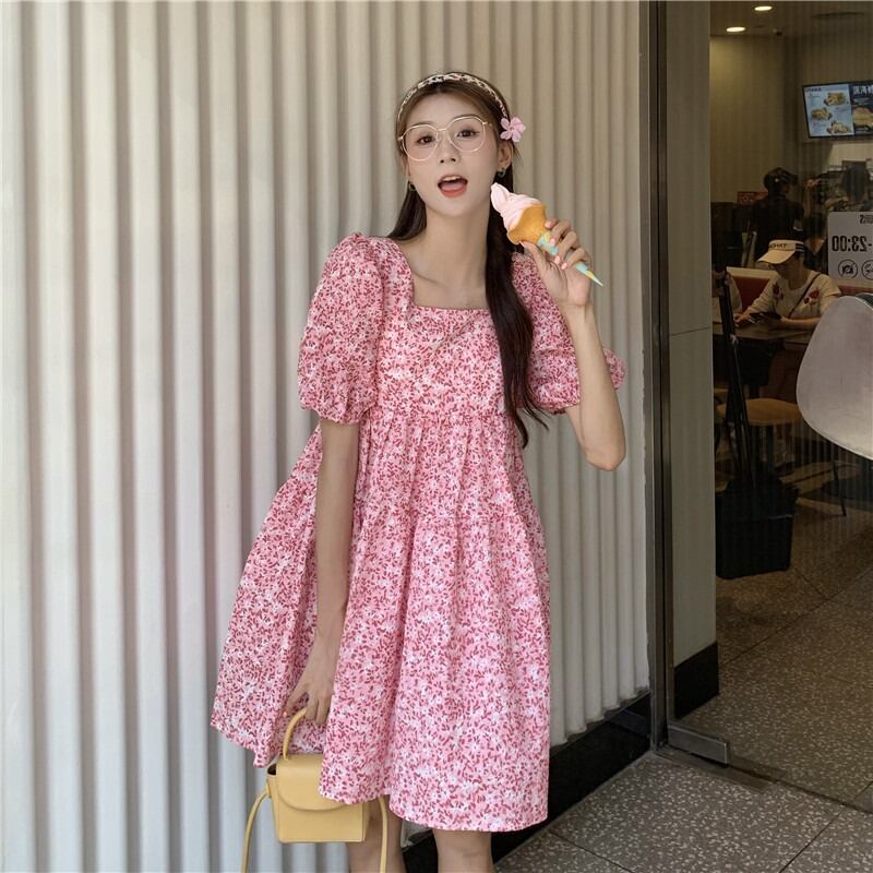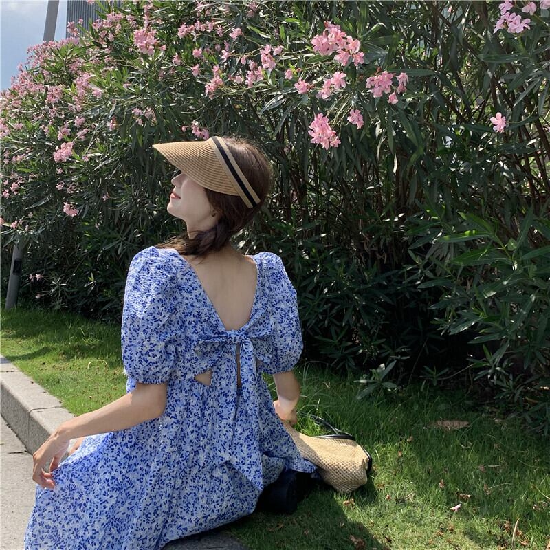ワンピース レディース ショート丈 ショート 膝上 袖あり 五分袖 5分袖 パフスリーブ 襟なし スクエアネック 青 ブルー ピンク 花柄 小花柄 フラワー ボタニカル ウエストマーク リボン バックリボン バックシャン かわいい 大人可愛い 大人 大人女子 きれいめ おしゃれ お洒落 シンプル ラブリー キュート ガーリー 10代 20代 30代 学生 通学 デート お出かけ 女子会 休日 イベント 普段使い カジュアル こなれ感 ラフ ルーズ 抜け感 ゆったり ゆる 夏 リゾート 海 プール モテ