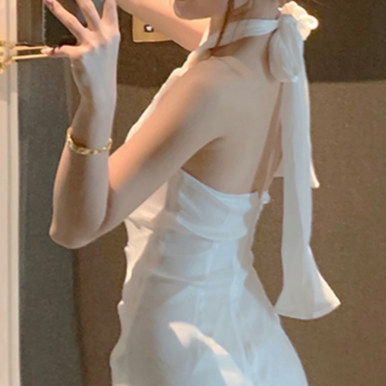 ワンピース レディース パーティードレス ホルターネック バックリボン ノースリーブ フィッシュテール アシンメトリー フリル 膝下 ミモレ丈 ミディアム タイト シフォン 無地 手洗い可能 3サイズ展開 S M L 白 ホワイト 大人可愛い かわいい フェミニン 華やか 上品 リュクス エレガント フォーマルスタイル 結婚式 披露宴 二次会 謝恩会 ドレスコード ホームパティー 女子会 10代 20代 パーティー イベント 韓国 オルチャン ファッション コーデ スタイル モテ 美脚 脚長 トレンド