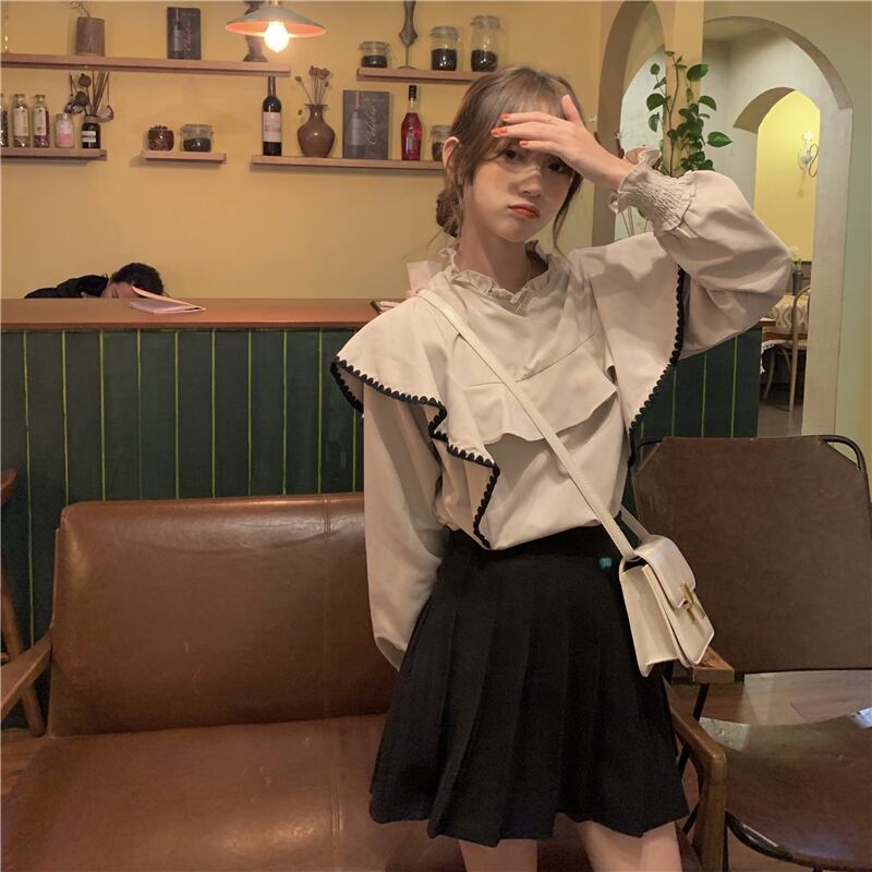 トップス シャツ ブラウス モノトーン 白 アプリコット 黒 ブラック 人気 トレンディ 長袖 ボリューム袖 ウイングショルダー フランジショルダー フリルカラー フリル かわいい 大人可愛い 大人 大人女子 きれいめ おしゃれ お洒落 シンプル ラブリー キュート ガーリー フェミニン 10代 20代 30代 通勤 学生 通学 デート お出かけ 女子会 休日 普段使い カジュアル 可憐 シック ふんわり こなれ感 ラフ ルーズ 抜け感 ゆったり ゆる 上品 エレガント 披露宴 パーティー イベント