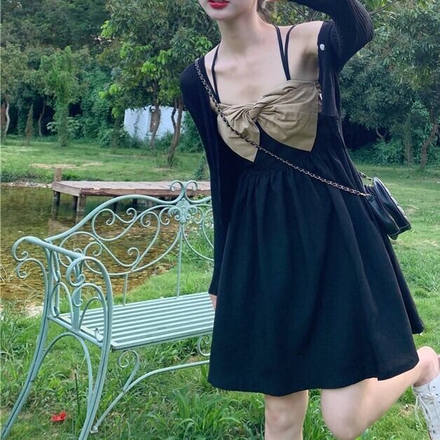 ワンピース Aライン ワンピ フレアースカート リボン フロント ポイント ブラック S M L パーティー イベント 夏 新しいレディース スウィート サスペンダースカート スーツ スモール ツーピース お食事 大人っぽい 綺麗 着回しやすい 韓国 ファッション 涼し気 夏 夏服 20代 30代 主役級 こなれ感 披露宴 お呼ばれ 特別な日 大人おしゃれ 大人女子セクシー デザイン重視 しぼりリボン シャーリング メンズライク ラグジュアリー ミニワンピ サスペンダーワンピース ランキング プチプラ
