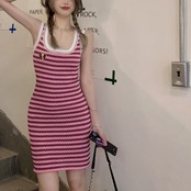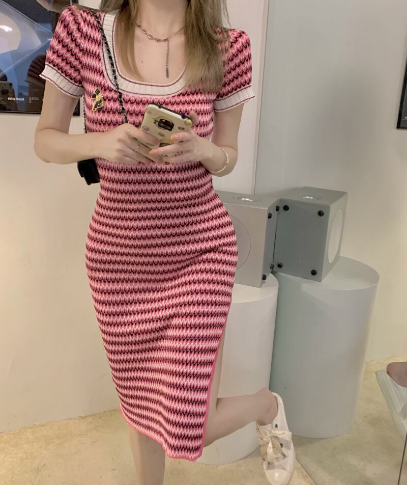 ニット ワンピース ワンピ 半袖 タイト ミディアム丈 ミディ ボーダー ストライプ ピンク ラウンドネック Aラインワン ピ夏 新しい ガールドレス スカート スプリット ドレス ミドル丈スカート ワンサイズ 女性 レディース パターン ラフ おしゃれ お洒落 かわいい かっこいい メンズライク ファッション 10代 20代 学生 通学 休日 お出かけ デート アウトドア 公園 ショッピング 着回し 重ね着 普段使い 韓国風オルチャン 旅行 パーティー イベント 女子力 二の腕カバー クール 大人きれい