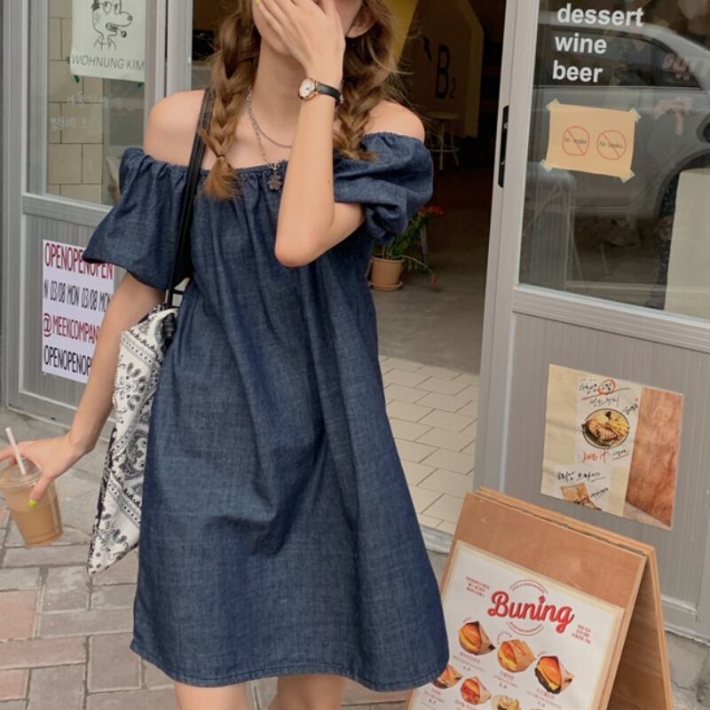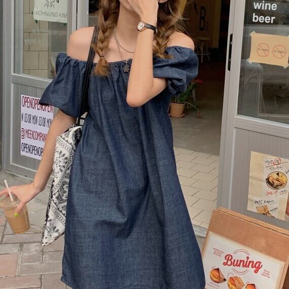デニム スカート ワンピース パフスリーブ ミニスカート ワンサイズ オールインワン ブルー 夏ワンピ 女性 夏 新しい オフショルダー スタイル ワンショルダー ルーズ エイジリデュー シング バブル半袖 ミドル丈 ミディアム丈 ミディドレス Tシャツ風ワンピ 大人女子 Aライン お出かけ 旅行 普段着 大人女性 大人かわいい プチプラ インポート 海外ファッション お得 休日 デート クール こなれ感 インポー カジュアル パーティー イベント ファッション海外ネットランキング プチプラ