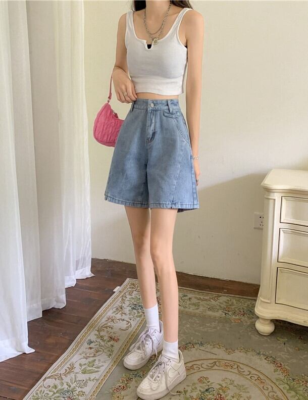 綿素材の体に優しく涼しいデニムショートパンツ。