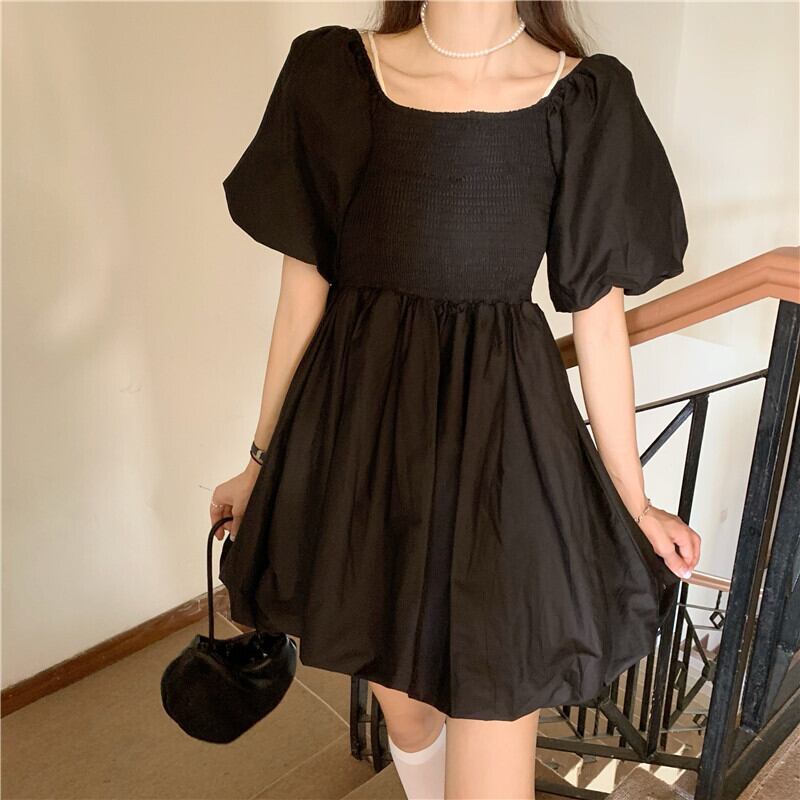 パフスリーブ ワンピース ショート丈 ミニスカート Aライン ワンピ シャーリング フロント ブルー ホワイト ブラック バルーンスカート スクエアネック ワンサイズ ミディアム丈 ミディ オルチャン ファッション 夏 優しい スタイル 膝上 ショート丈 ショート 袖あり 半袖 スリーブ かわいい 大人可愛い 大人 大人女子 きれいめ おしゃれ お洒落 シンプル ラブリー キュート デート お出かけ 女子会 休日 イベント 普段使い カジュアル こなれ感 抜け感 女性 韓国風 新鮮 フレンチドレス
