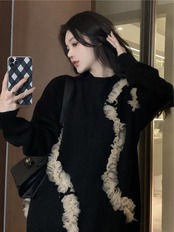 トップス レディースセーター 袖あり 長袖 萌袖 Uネック ラウンドネック 襟なし ワイド 異素材MIX レース ふわふわ 厚手 黒 ブラック かわいい 大人可愛い 大人 大人女子 きれいめ おしゃれ お洒落 シンプル ラブリー キュート ガーリー フェミニン 10代 20代 30代 通勤 学生 通学 デート お出かけ 女子会 休日 普段使い カジュアル 防寒 暖かい あったか ストレート こなれ感 ラフ ルーズ 抜け感 楽ちん モテ 着回し 体系カバー とろみ感 ゆったり ゆる パーティー イベント