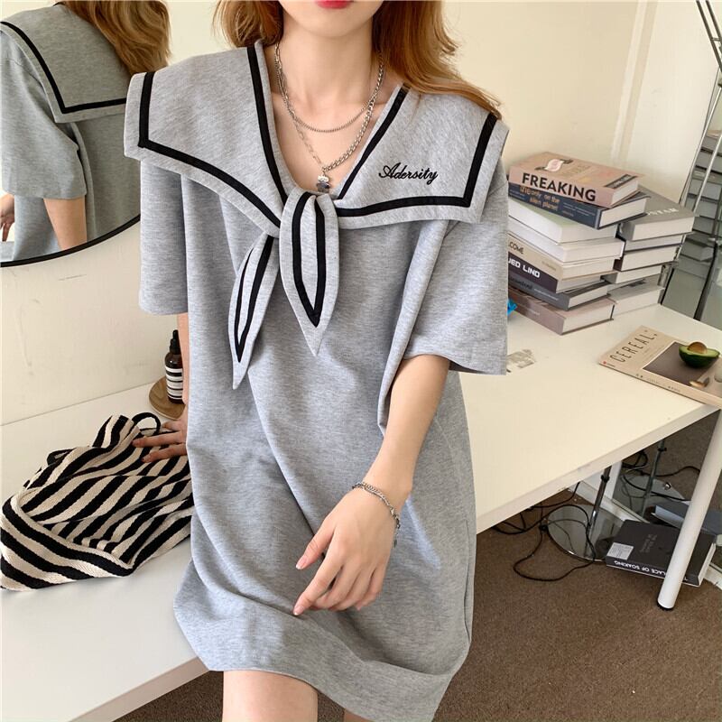 ワンピース レディース ミニ丈 ミニ ショート丈 ショート 袖あり 五分袖 5分袖 襟付き セーラー服 制服 プルオーバー ストレート ワイド リボン 灰色 グレー 緑 ターコイズ 青 紺 ダークブルー 白 ホワイト かわいい 大人可愛い 大人 大人女子 きれいめ おしゃれ お洒落 シンプル ラブリー キュート ガーリー 10代 20代 学生 通学 デート お出かけ 女子会 休日 イベント 普段使い カジュアル こなれ感 ラフ ルーズ 抜け感 ゆったり ゆる 大きめ パーティー リゾート 旅行 プール